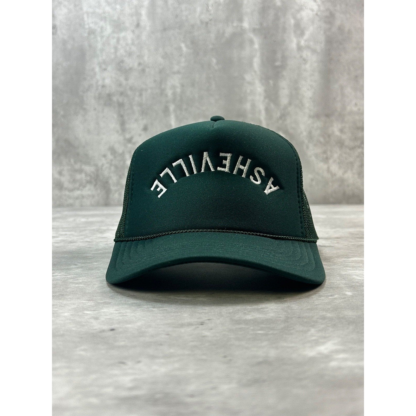 Ashville Upside Down Embroidered Spellout Trucker Snapback Hat OSFA Green