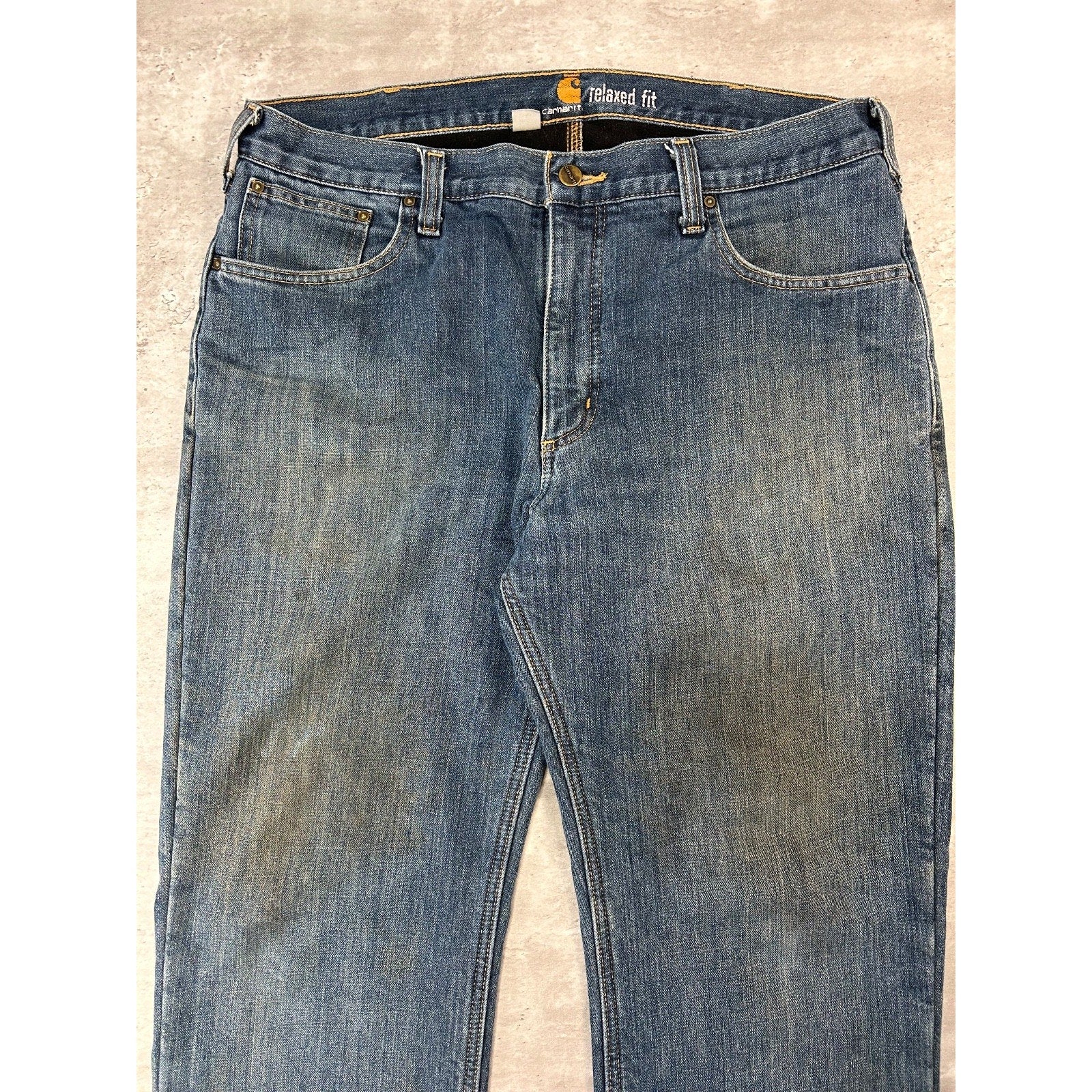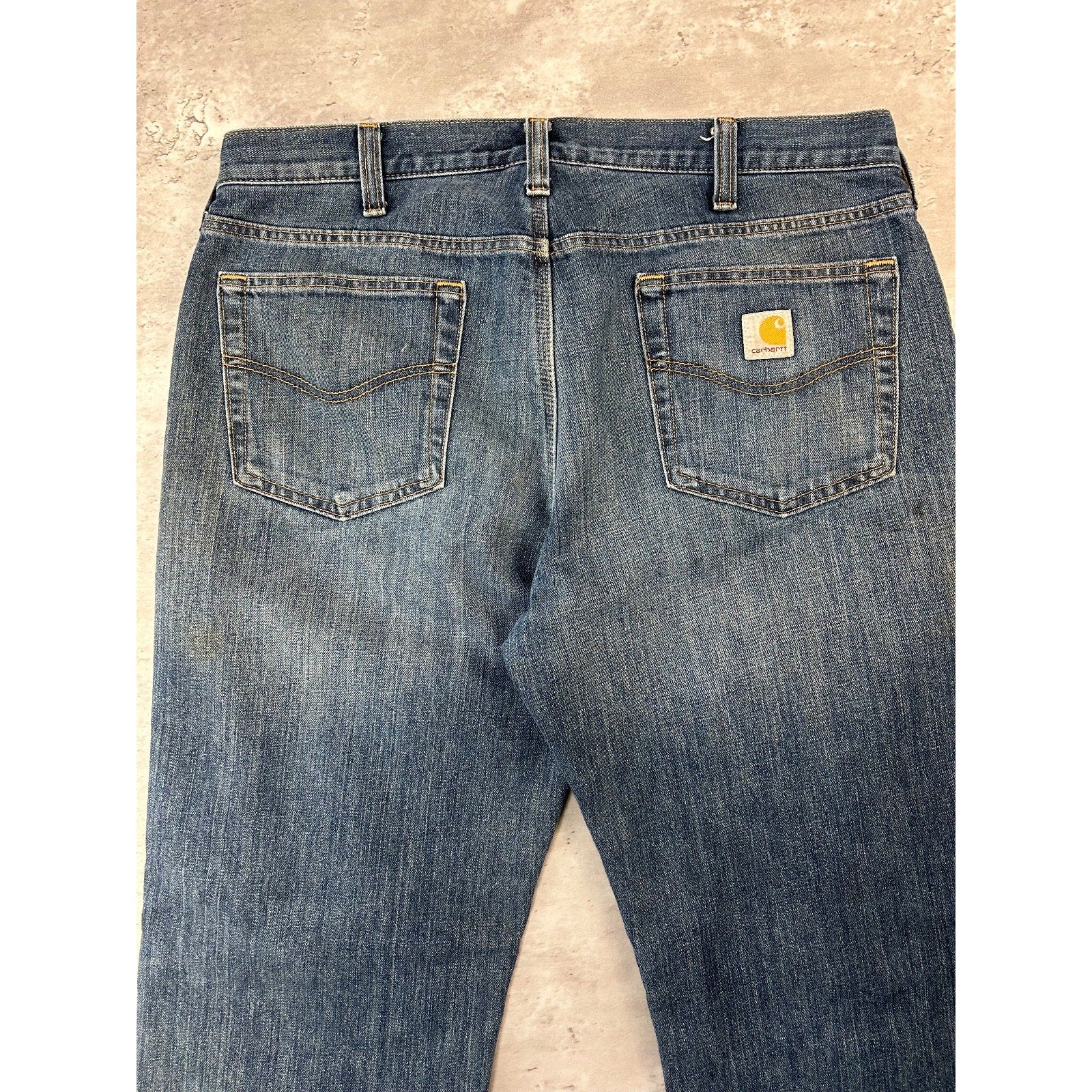 Carhartt Relaxed Fit Fleece Lined Dark Wash Workwear Denim Pants Size 37 Blue