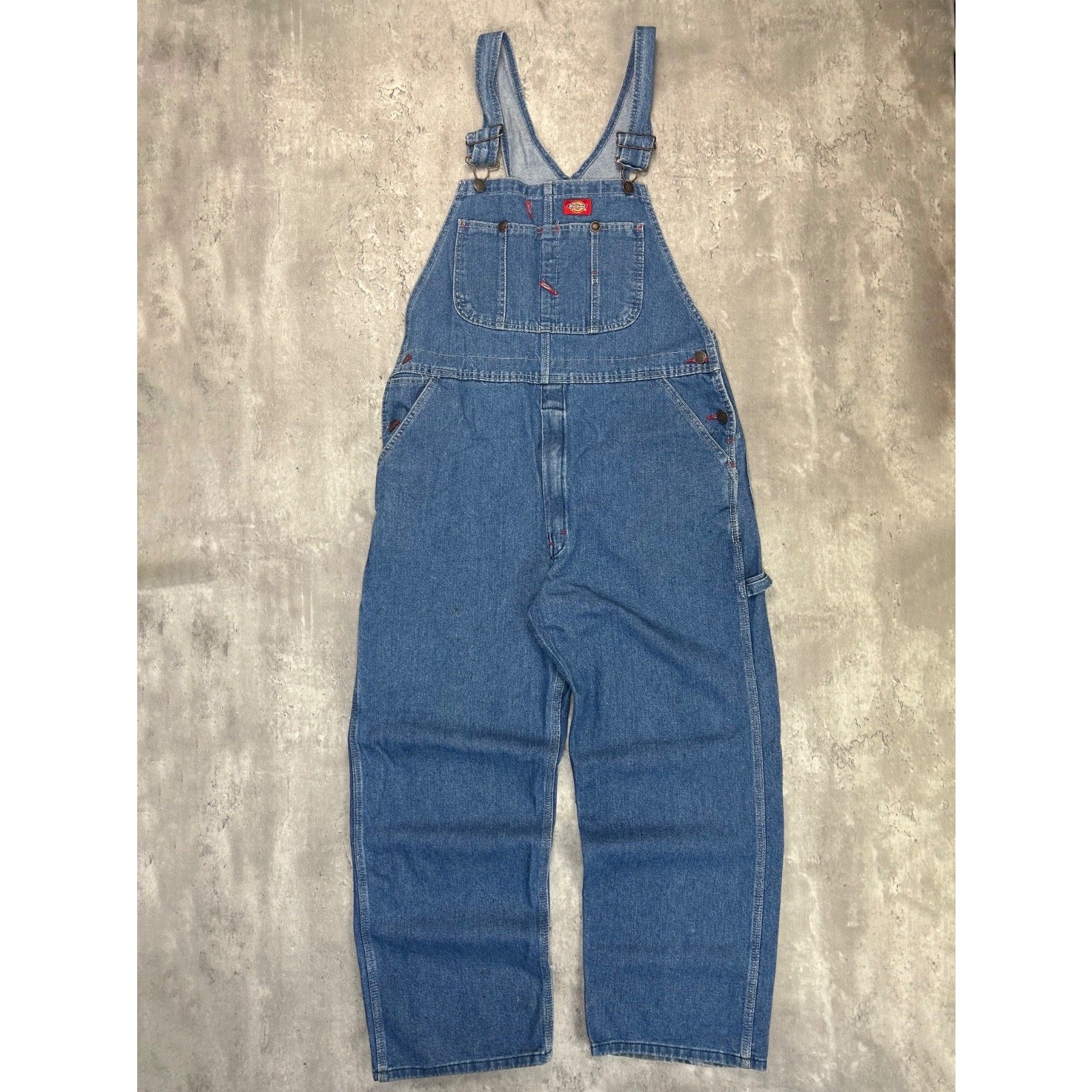 Dickies Medium Wash Denim Workwear Carpenter Overall Pants Size 41 Blue
