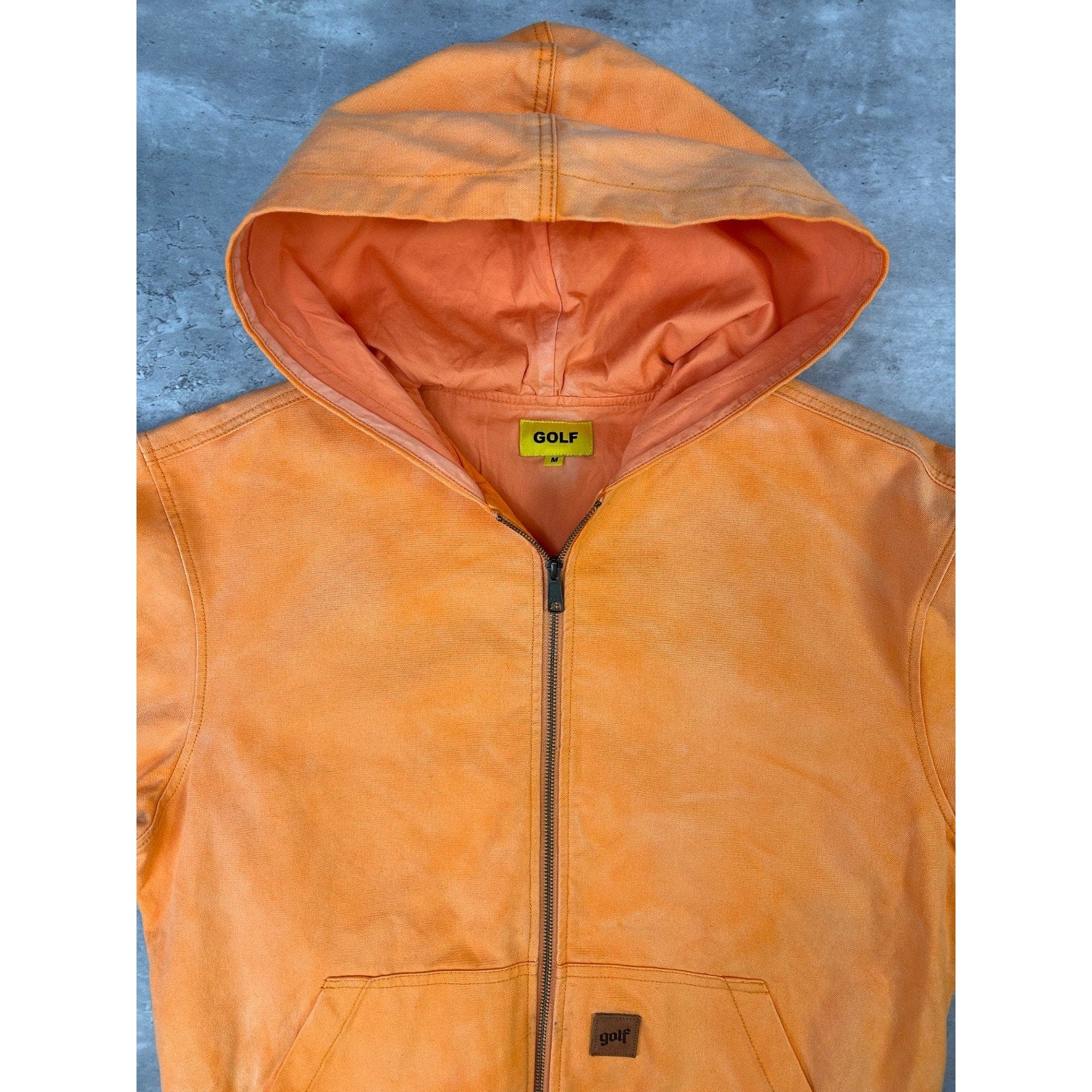 GOLF Workwear Style Canvas Full Zip Hooded Bomber Jacket Size Medium Orange