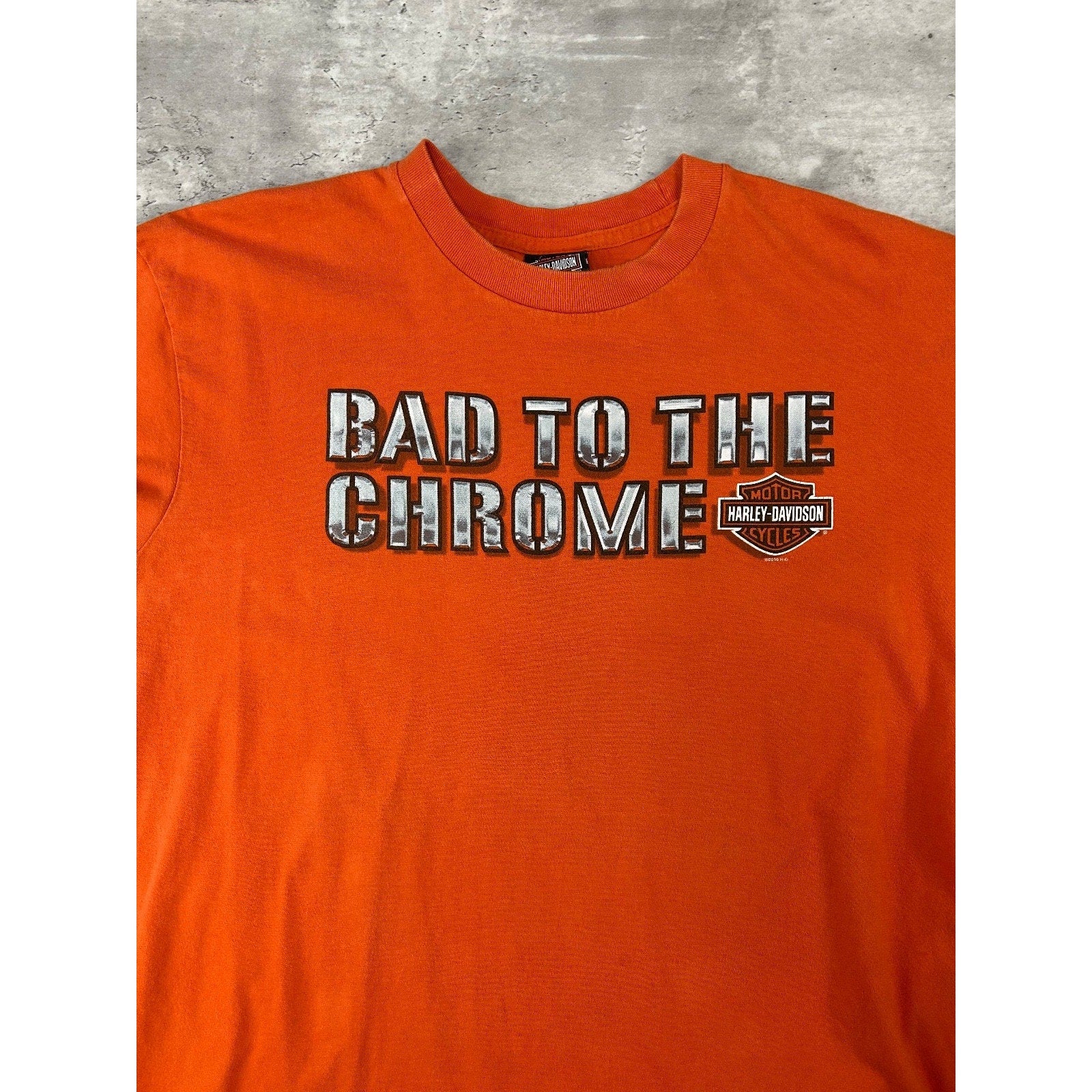 Harley Davidson Bad To The Chrome Motorcycle T-Shirt Size XL Orange