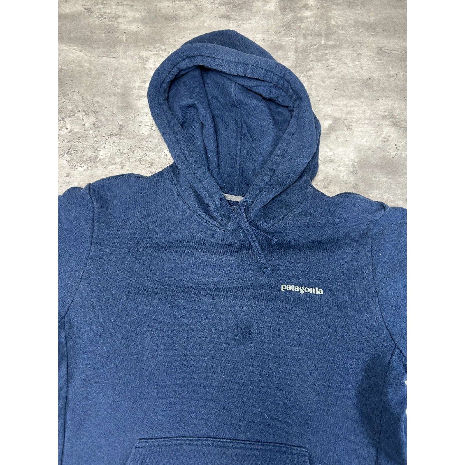 Patagonia Graphic Spellout Pullover Hooded Sweatshirt Size Medium Navy Blue