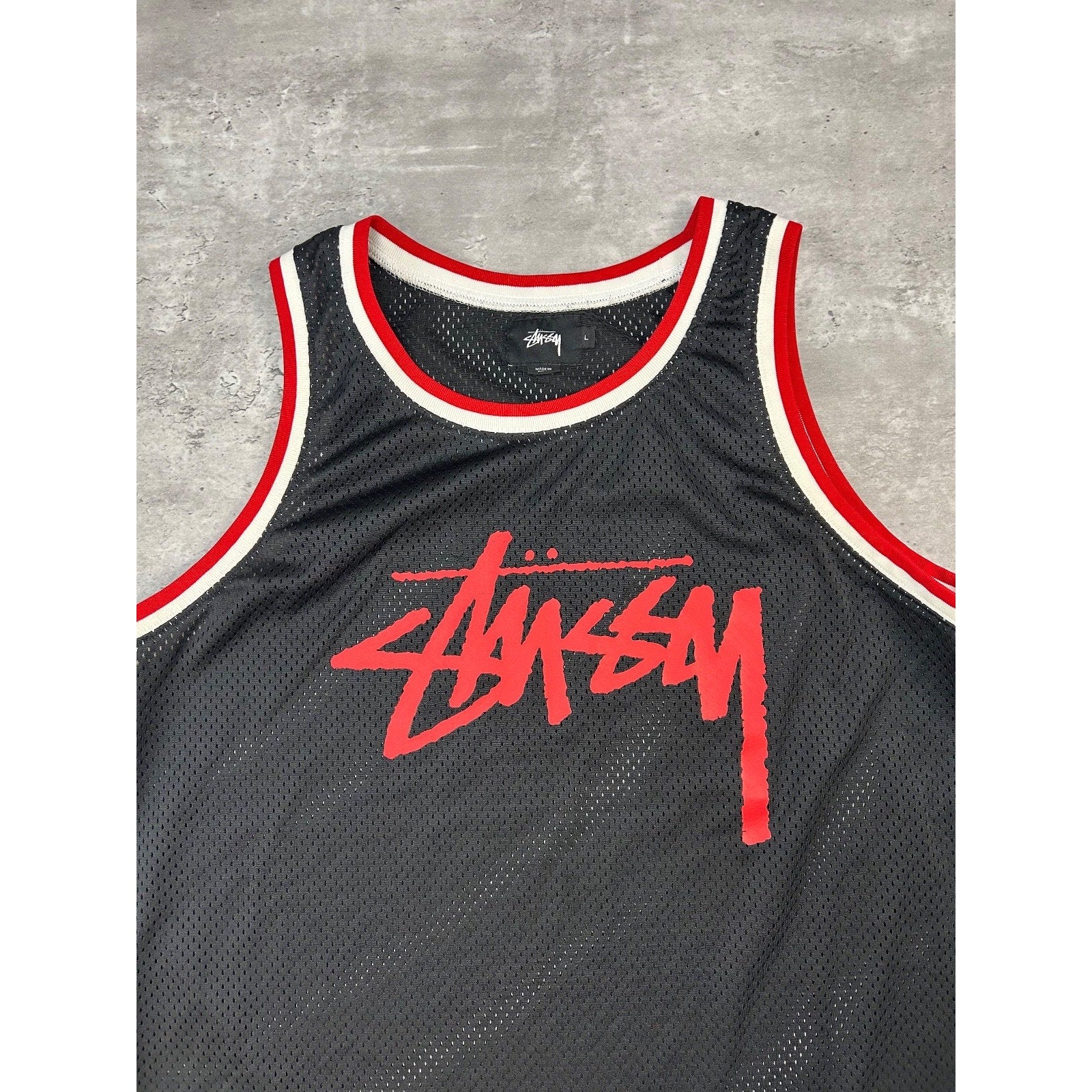Stussy Classic Spellout Logo Basketball Jersey Size Large Black