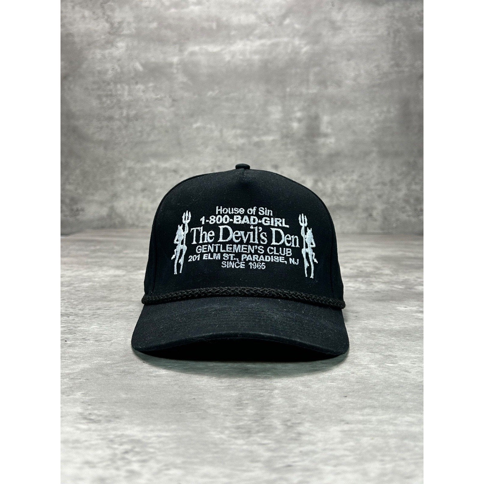 The Devils Den House Of Sin Embroidered Spellout Trucker Snapback Hat OSFA