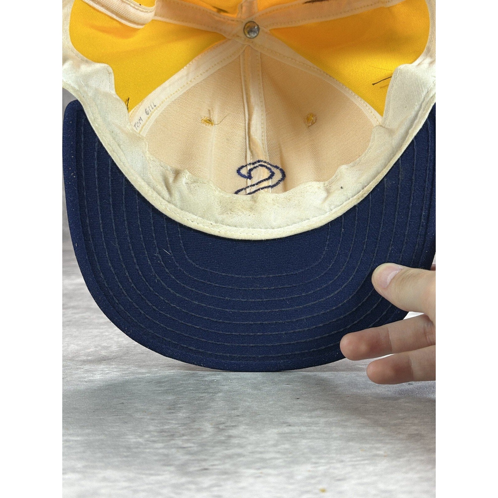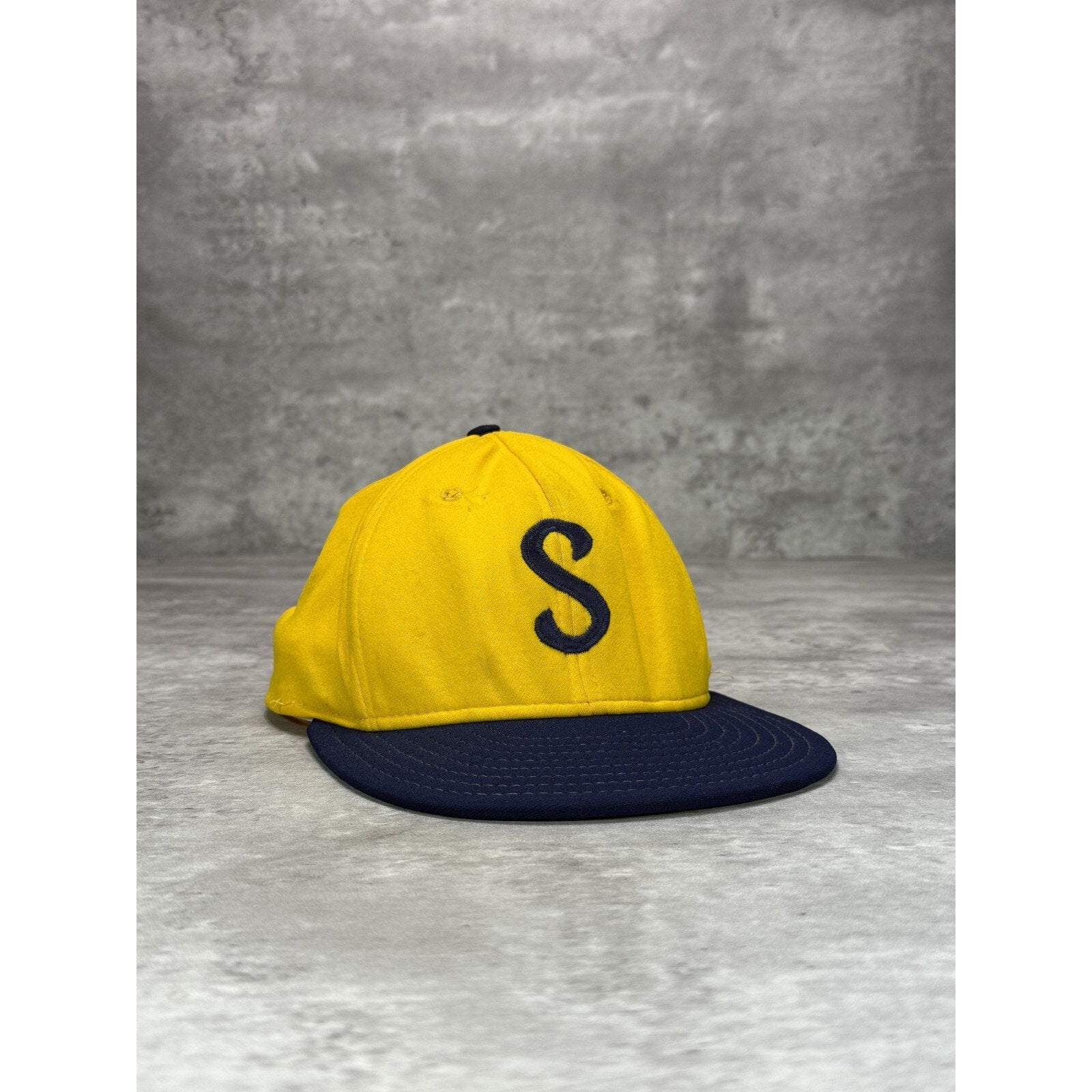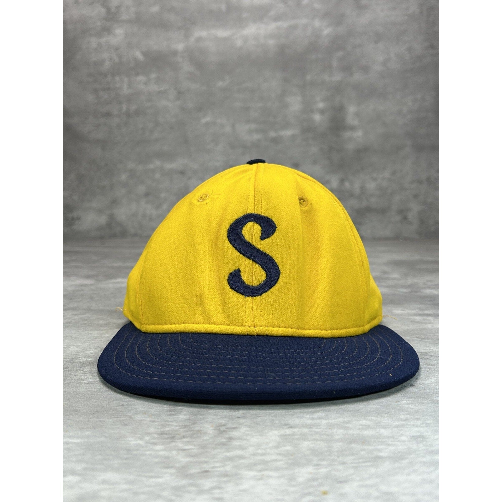 Vintage 1980s Embroidered S Two Tone Snapback Hat OSFA Yellow/Navy Blue