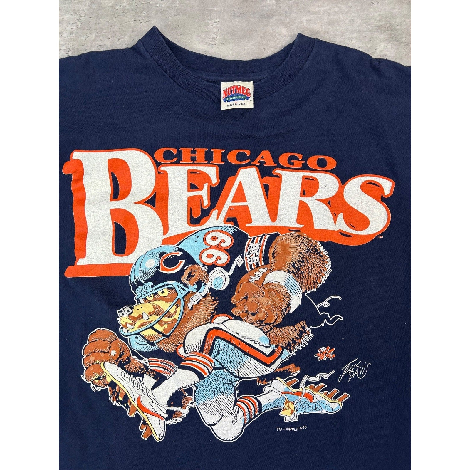 Vintage 1988 Chicago Bears NFL Big Mascot Graphic Football T-Shirt Size Large