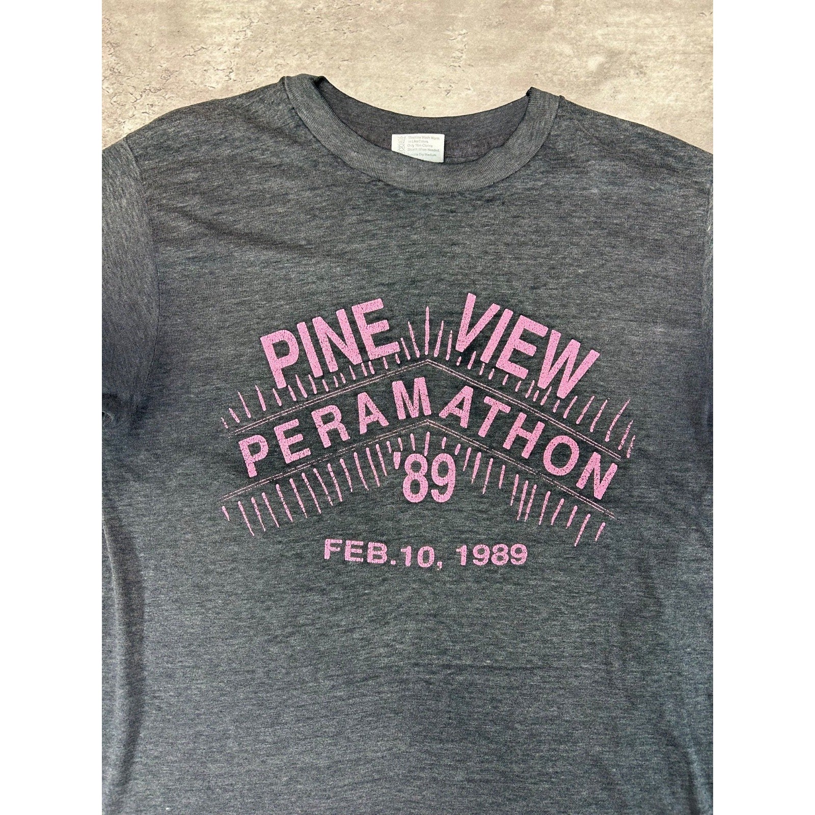 Vintage 1989 Pine View Permathon Graphic Spellout T-Shirt Size Large