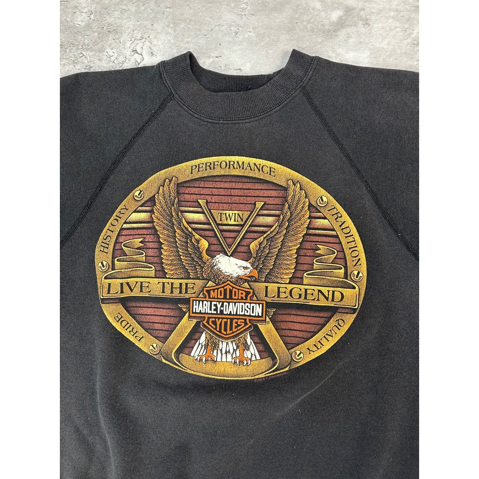 Vintage 1992 Harley Davidson Bald Eagle Classic Logo Graphic Sweatshirt Medium