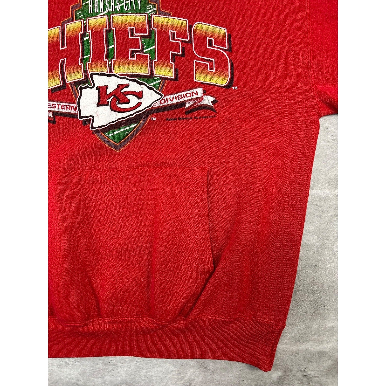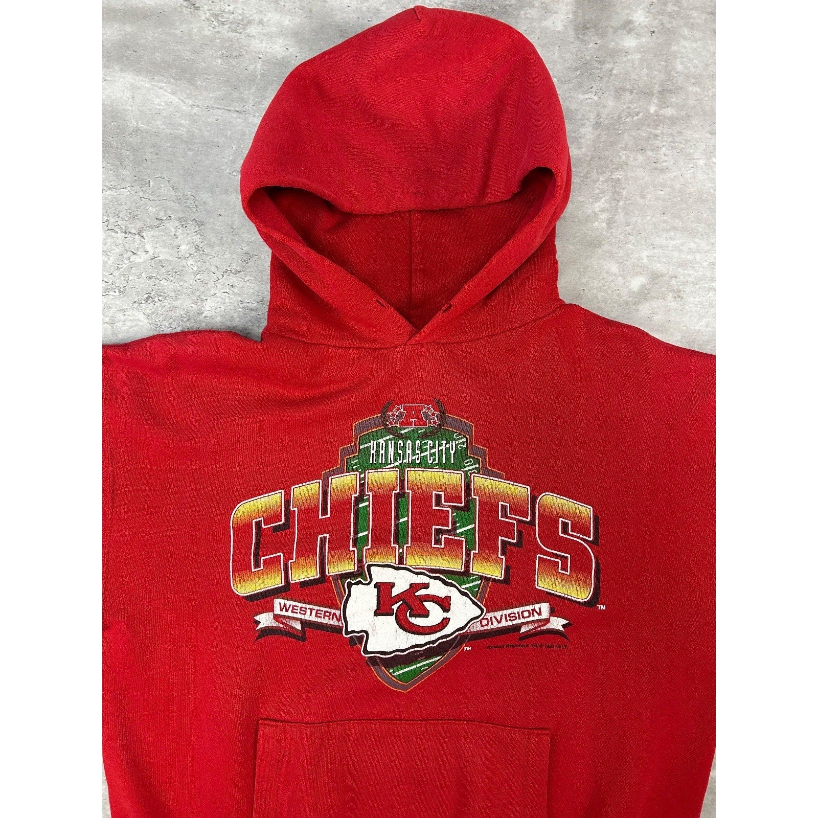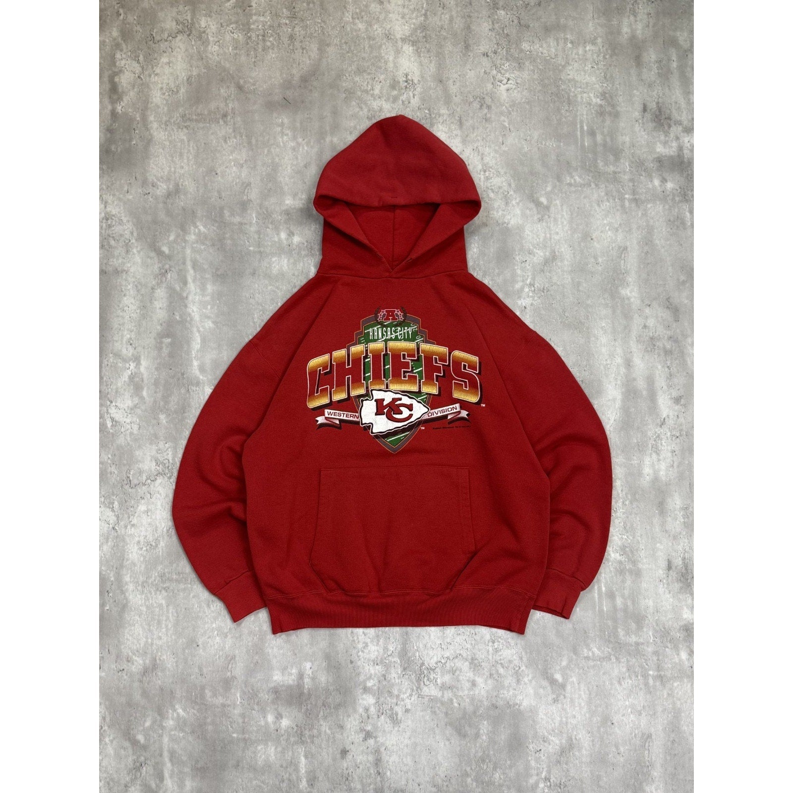 Vintage 1993 Kansas City Chiefs NFL Graphic Spellout Hooded Sweatshirt Sz Large