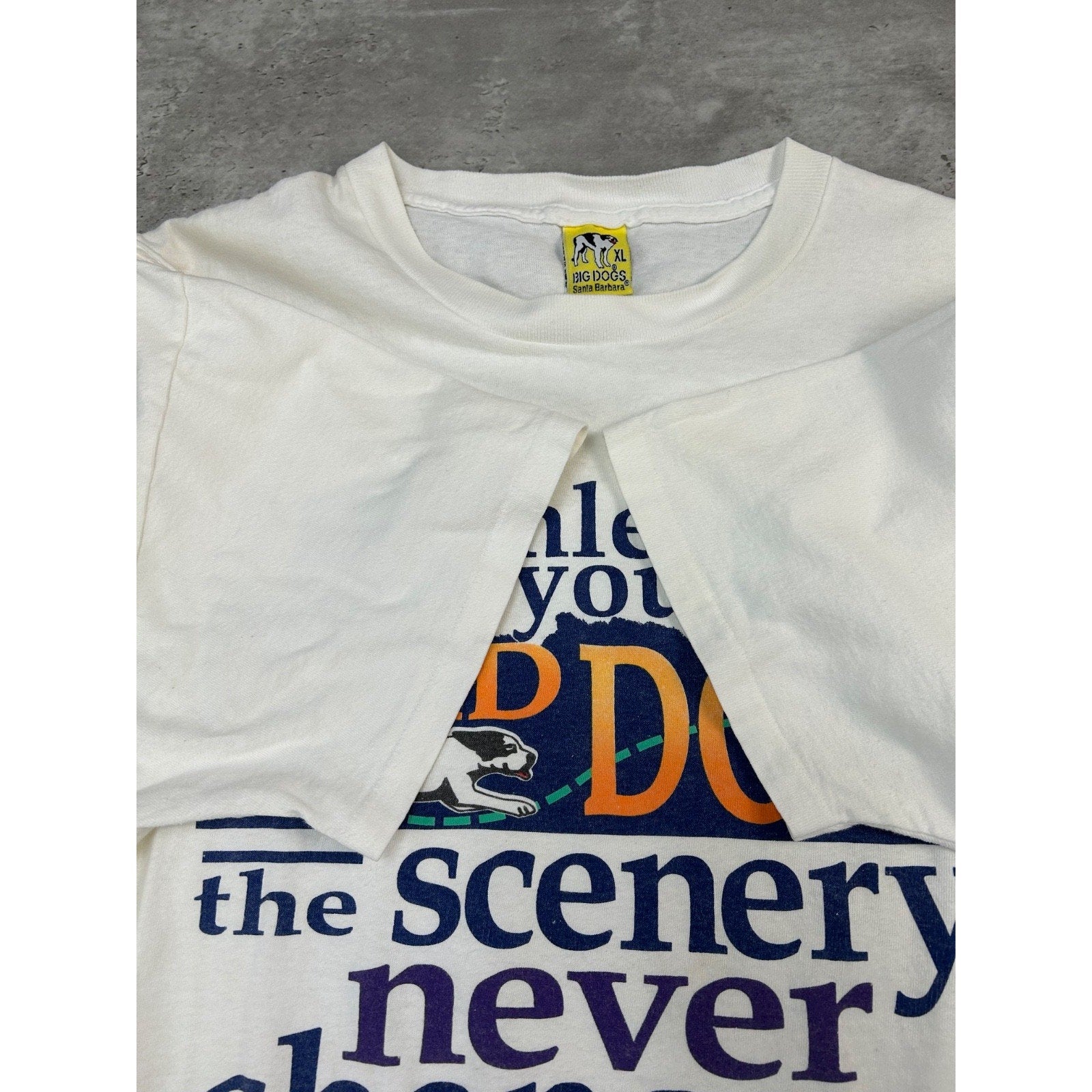 Vintage 1994 Big Dogs Unless You're The Lead Dog Slogan Graphic T-Shirt Size XL