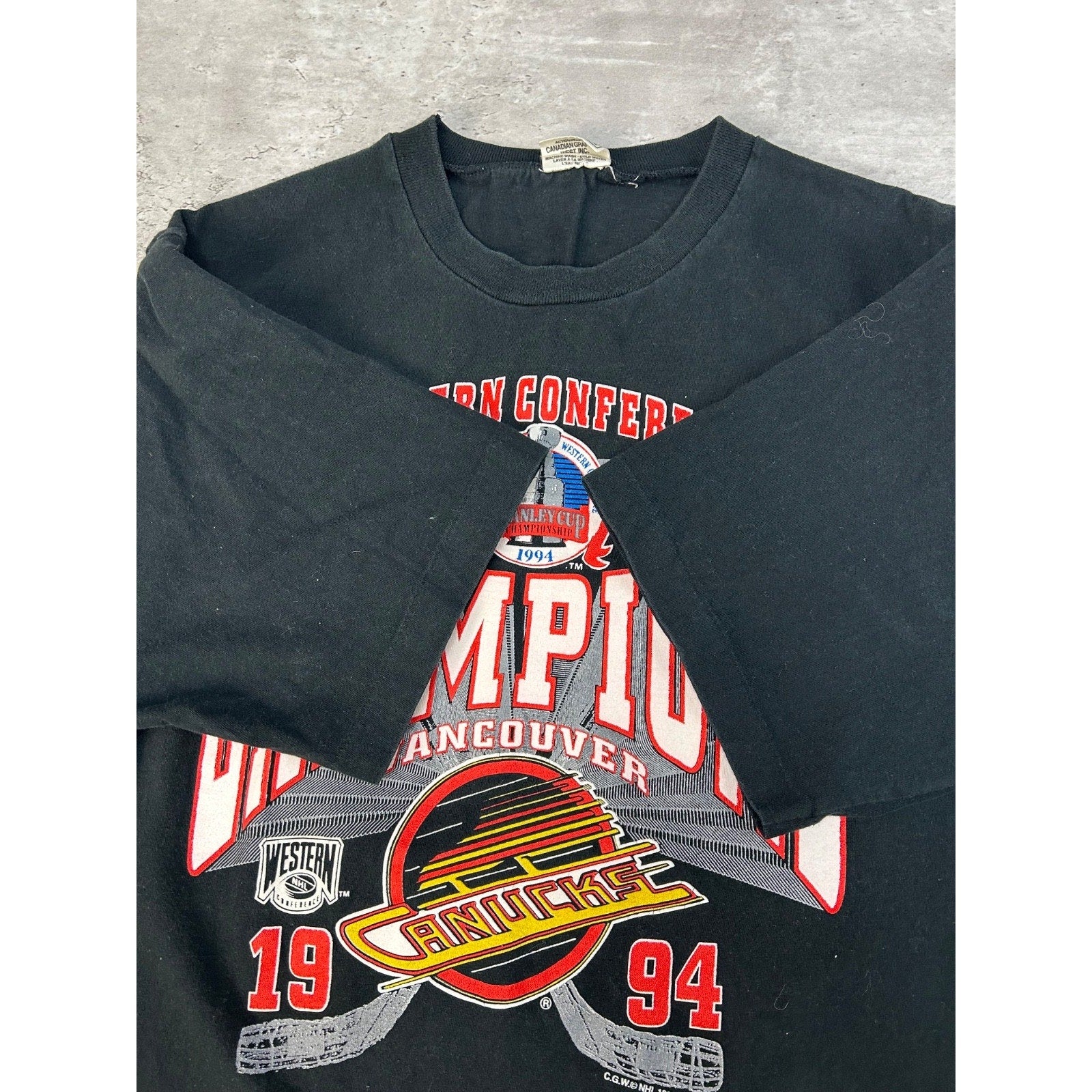 Vintage 1994 Vancouver Canucks NHL Western Conference Champs T-Shirt Size Large