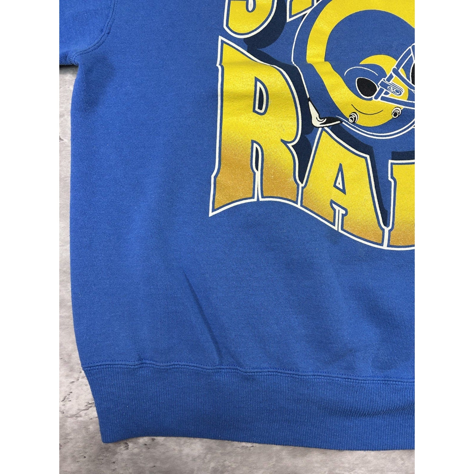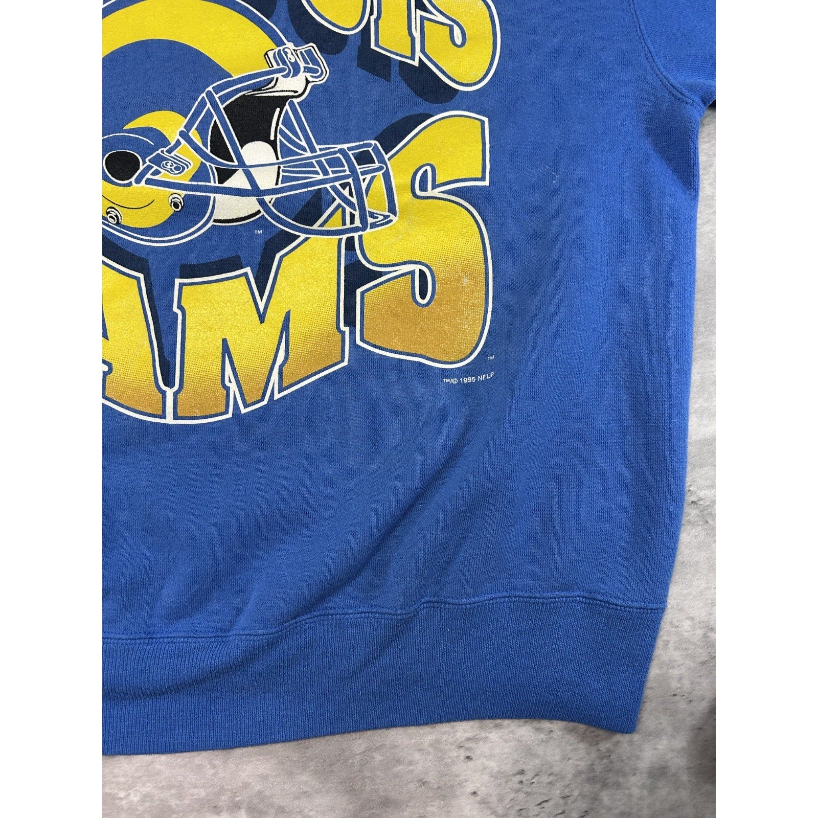 Vintage 1995 St Louis Rams NFL Big Graphic Helmet Spellout Sweatshirt Size XL