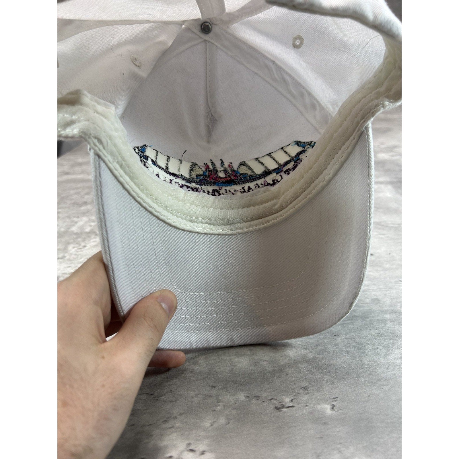 General wear due to age. Yellowing on sweatband. Creasing on dome.