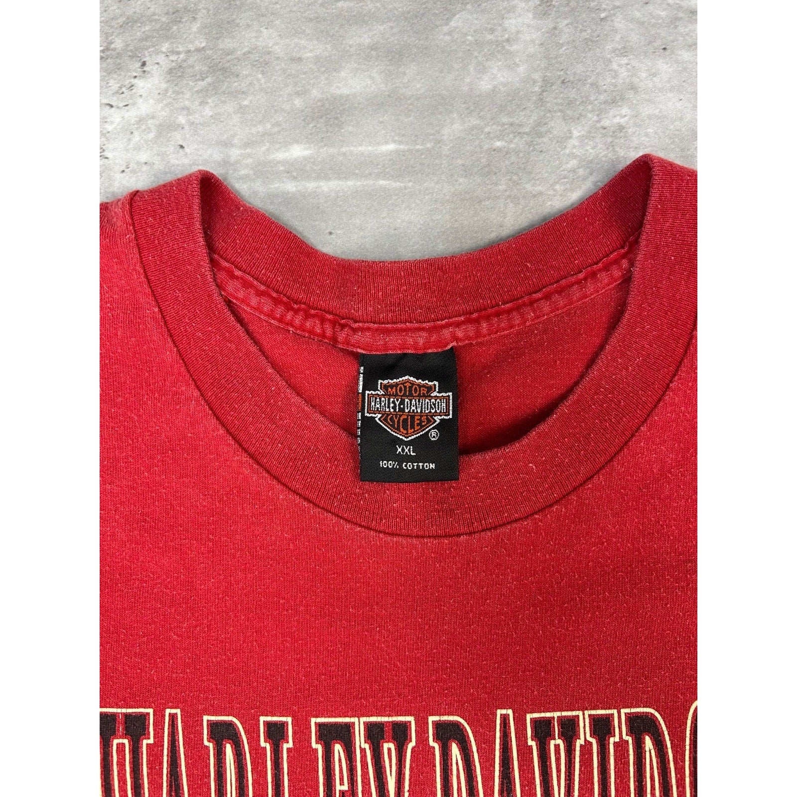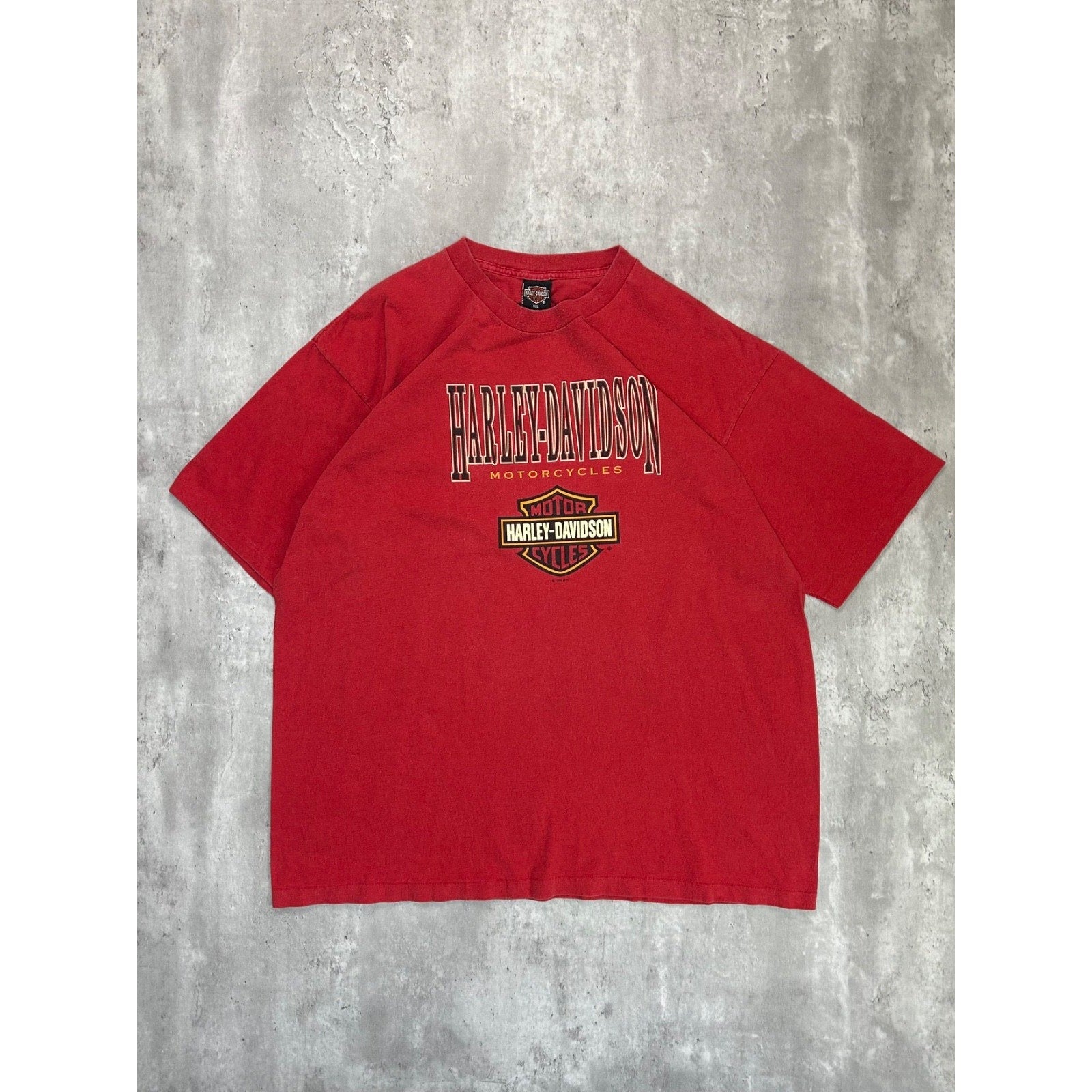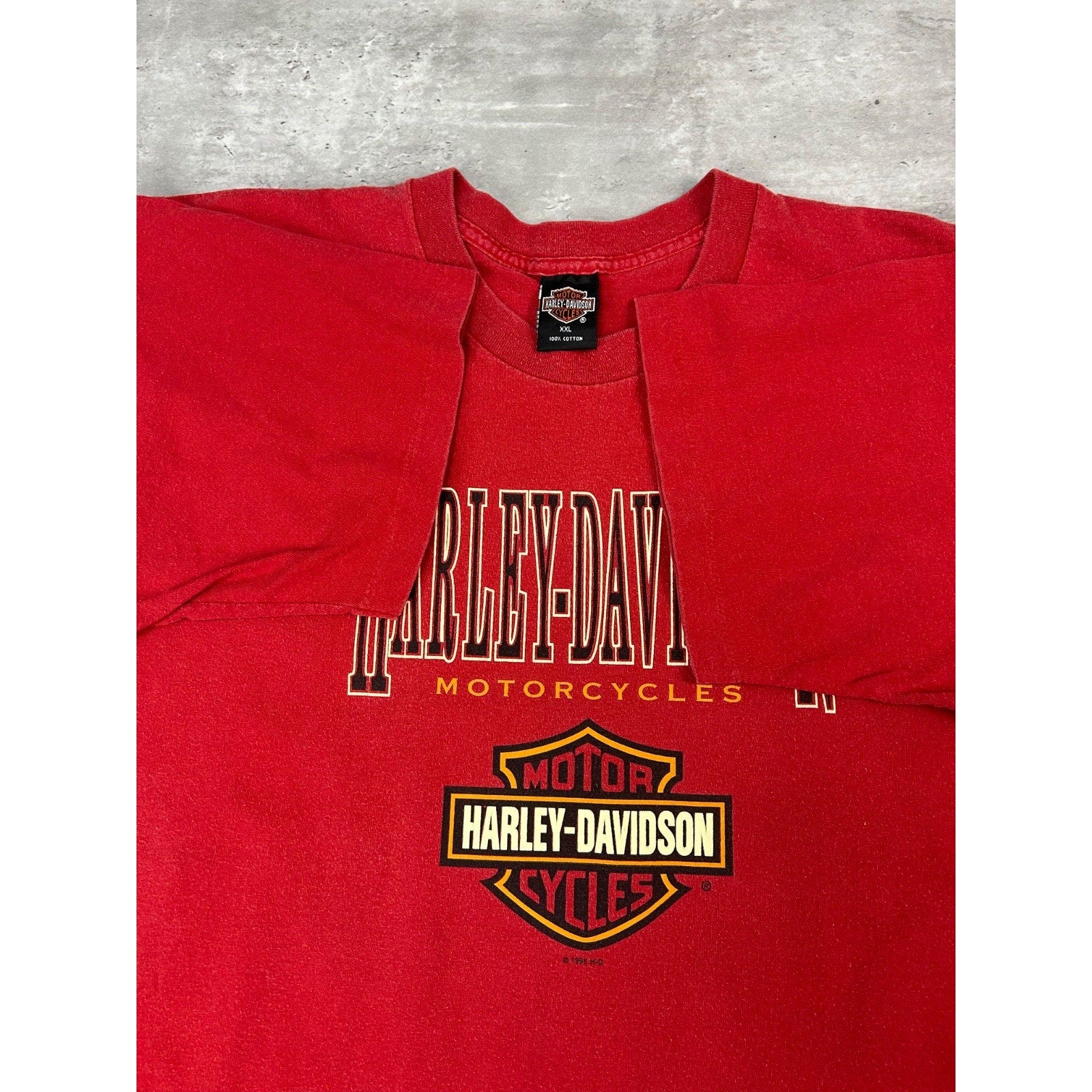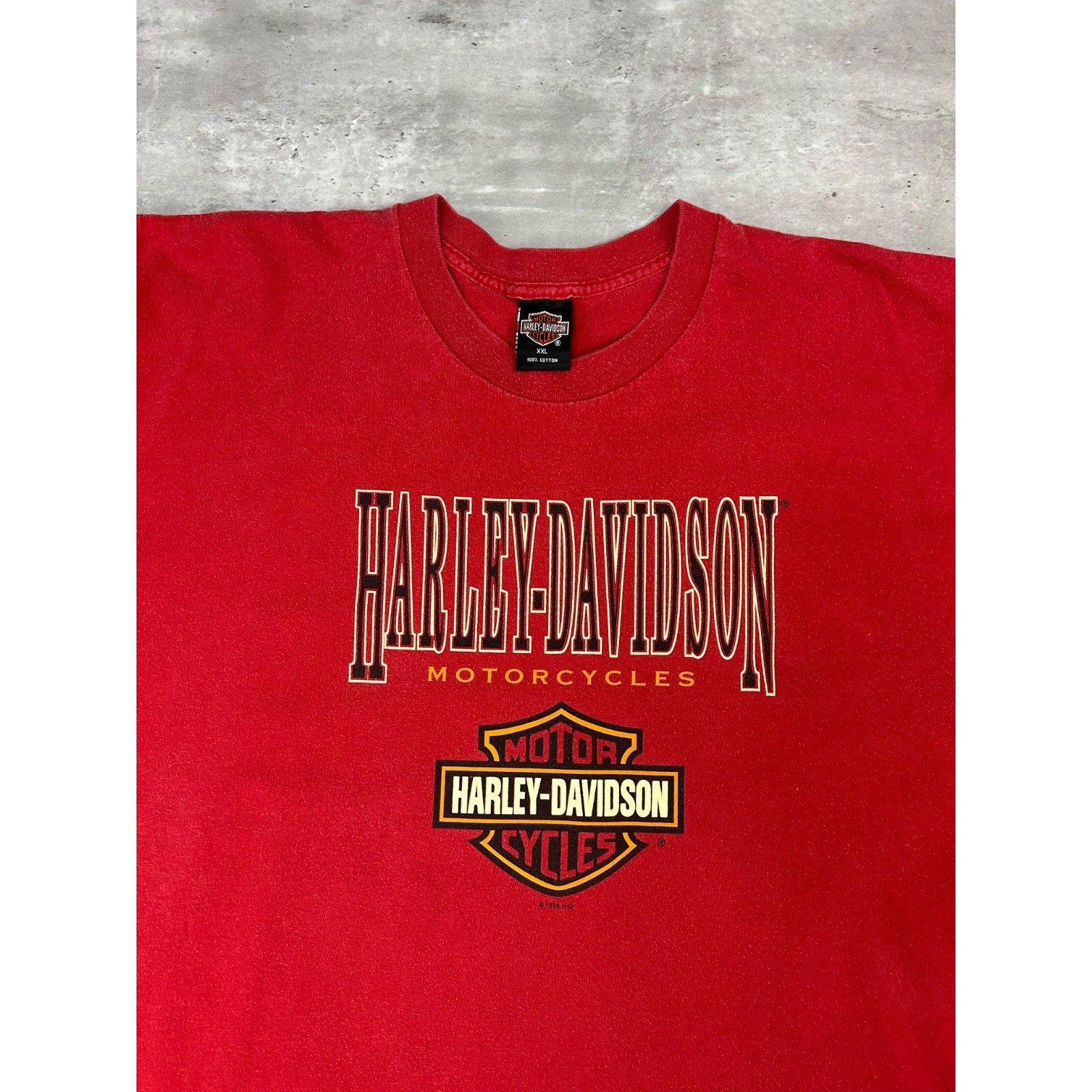 Vintage 1996 Harley Davidson Graphic Spellout Logo T-Shirt Size 2XL Red