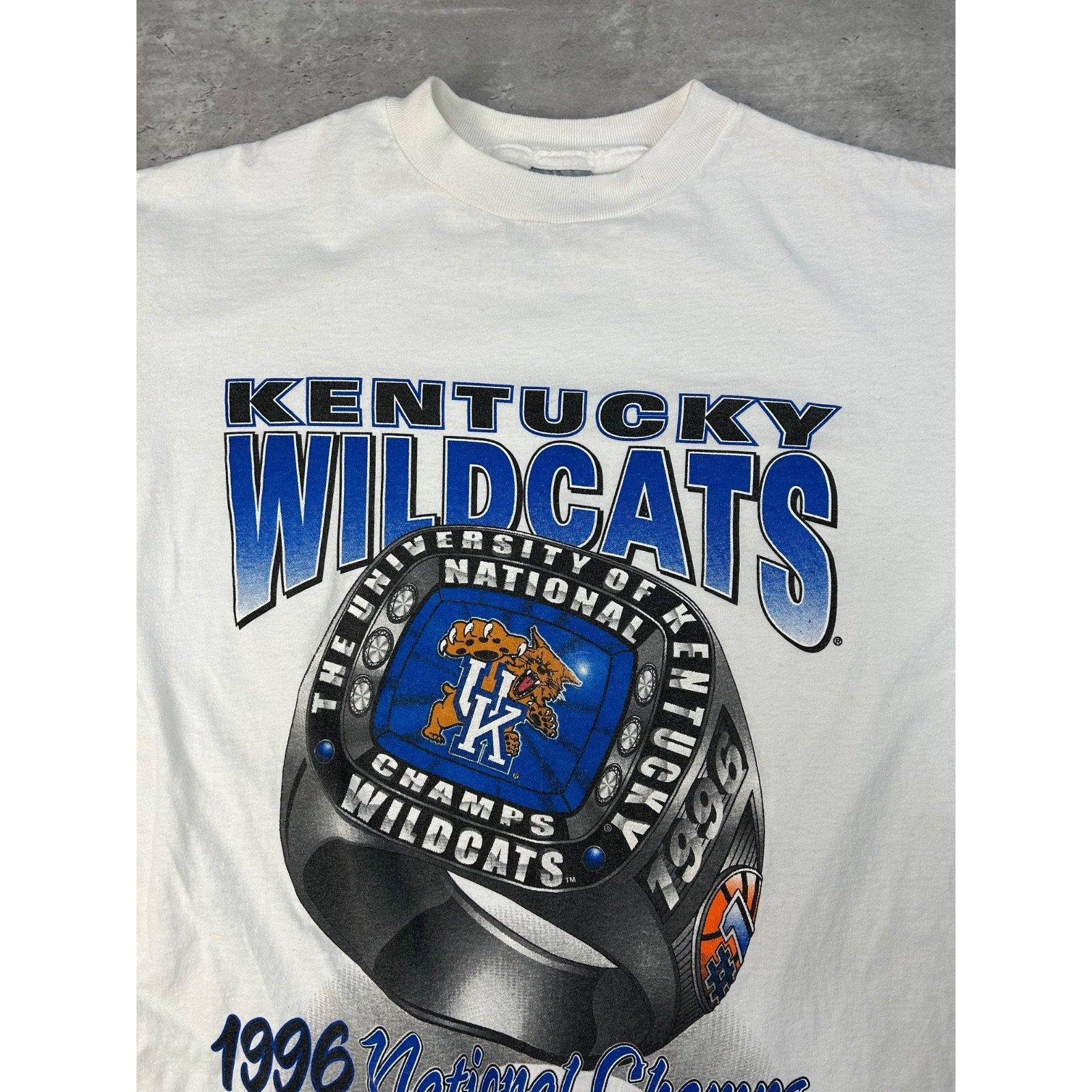 Vintage 1996 Kentucky Wildcats NCAA Basketball National Champs T-Shirt Sz Large