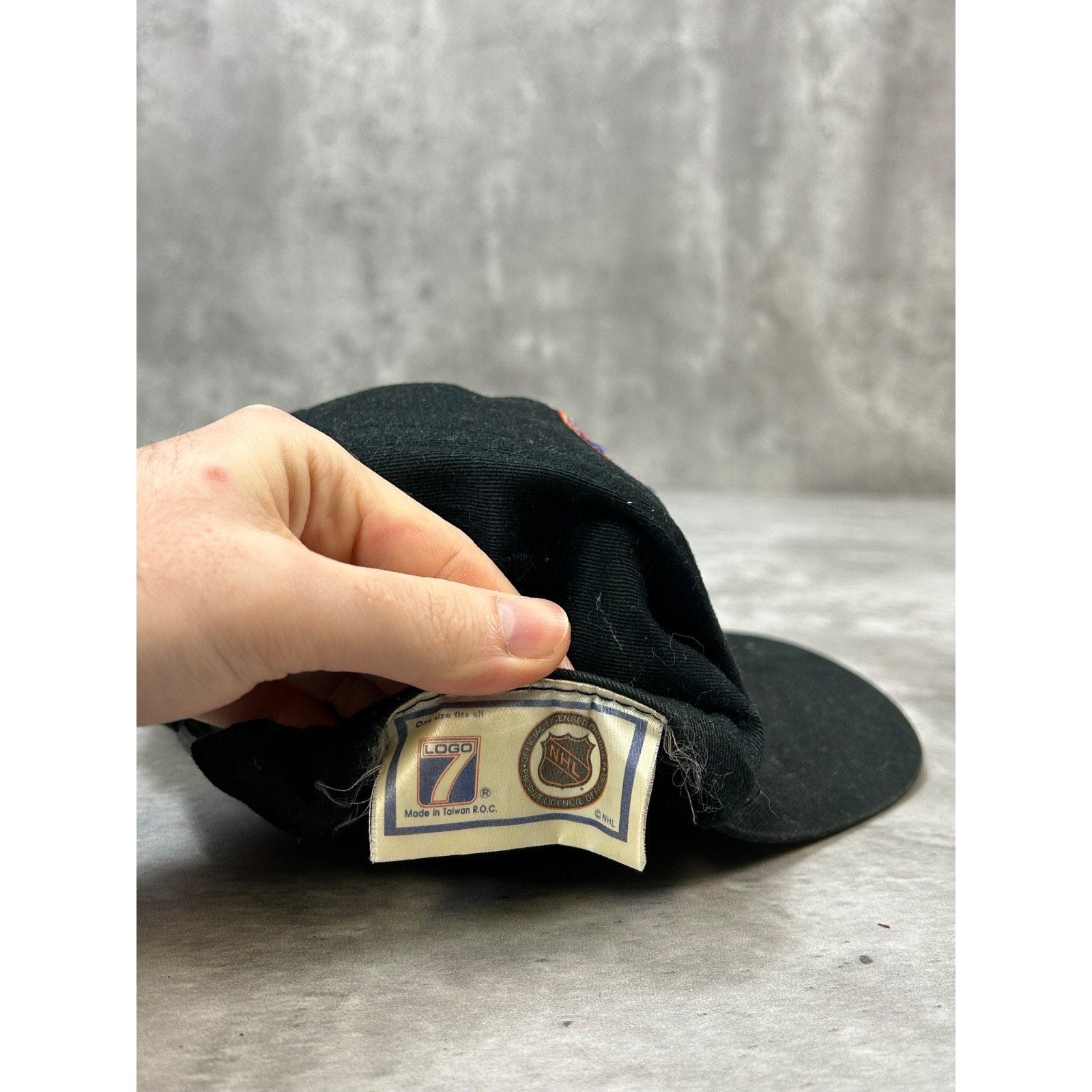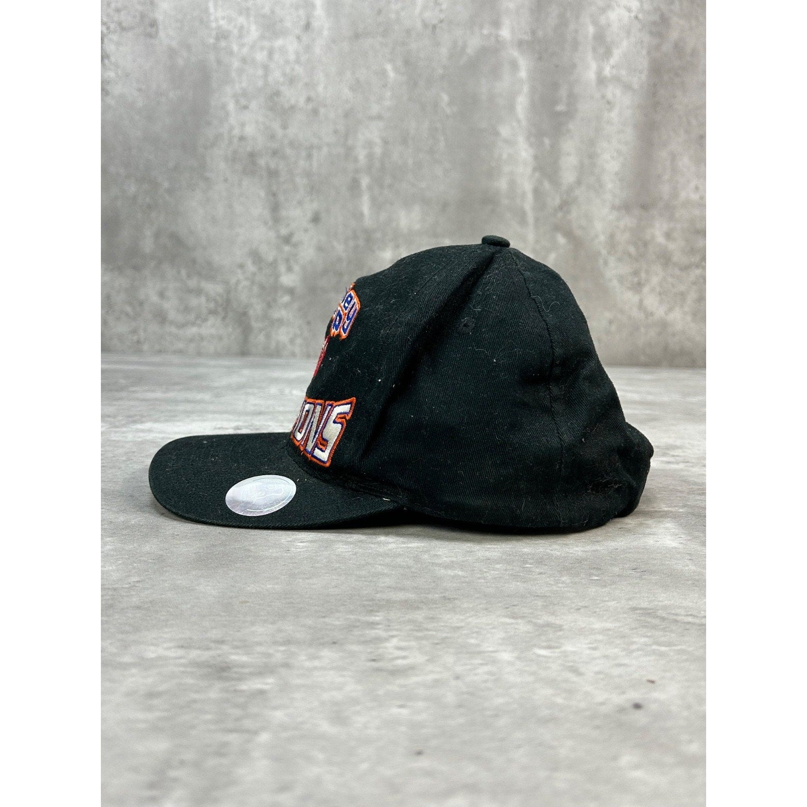 General wear due to age. Creasing on dome. Loose threads found around. Light marks on embroidery. Wear on sweatband.