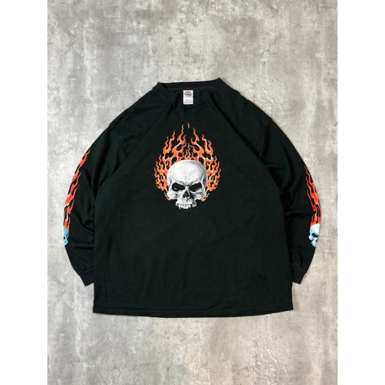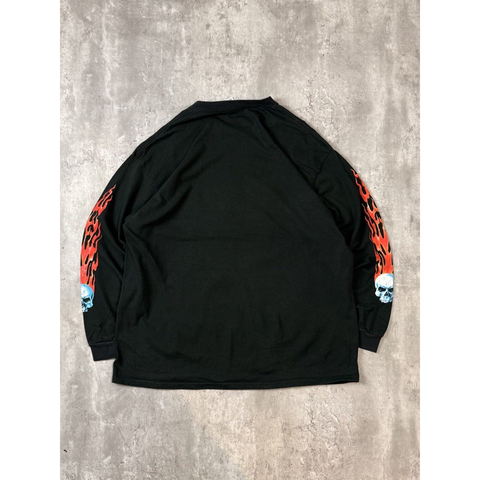 Vintage 2000s Flaming Skull Graphic Long Sleeve T-Shirt Size 2XL Black