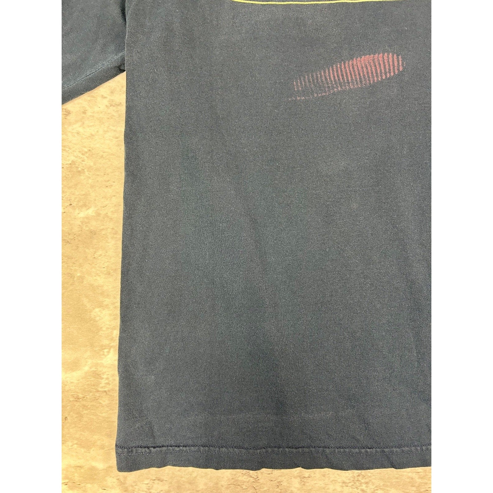 wear, fading due to age. Tears under pits. Cracking/fading on print. Fade marks on back. Paint marks found around.