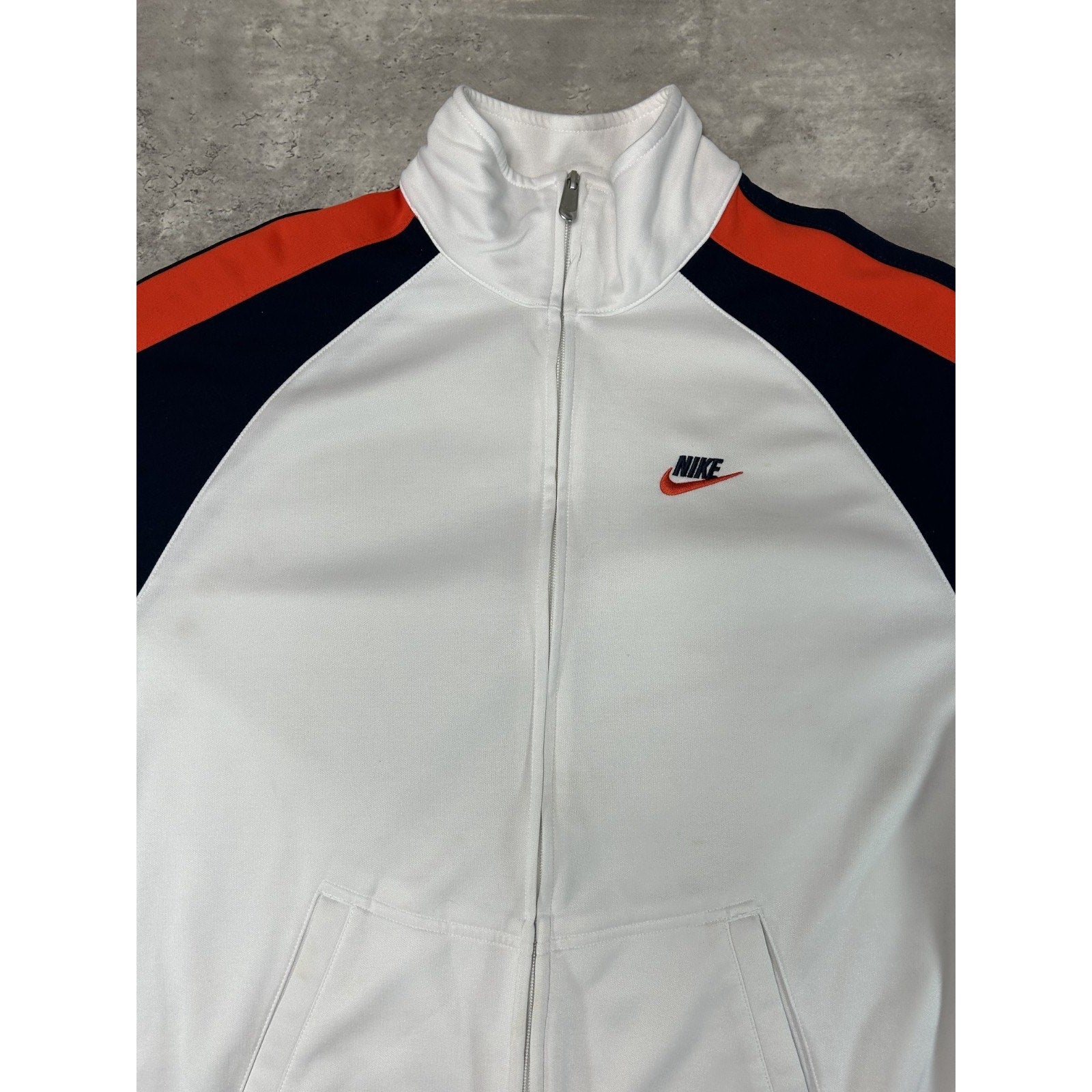 Vintage 2000s Nike Embroidered Logo Full Zip Tack Suit Jacket Size XL White