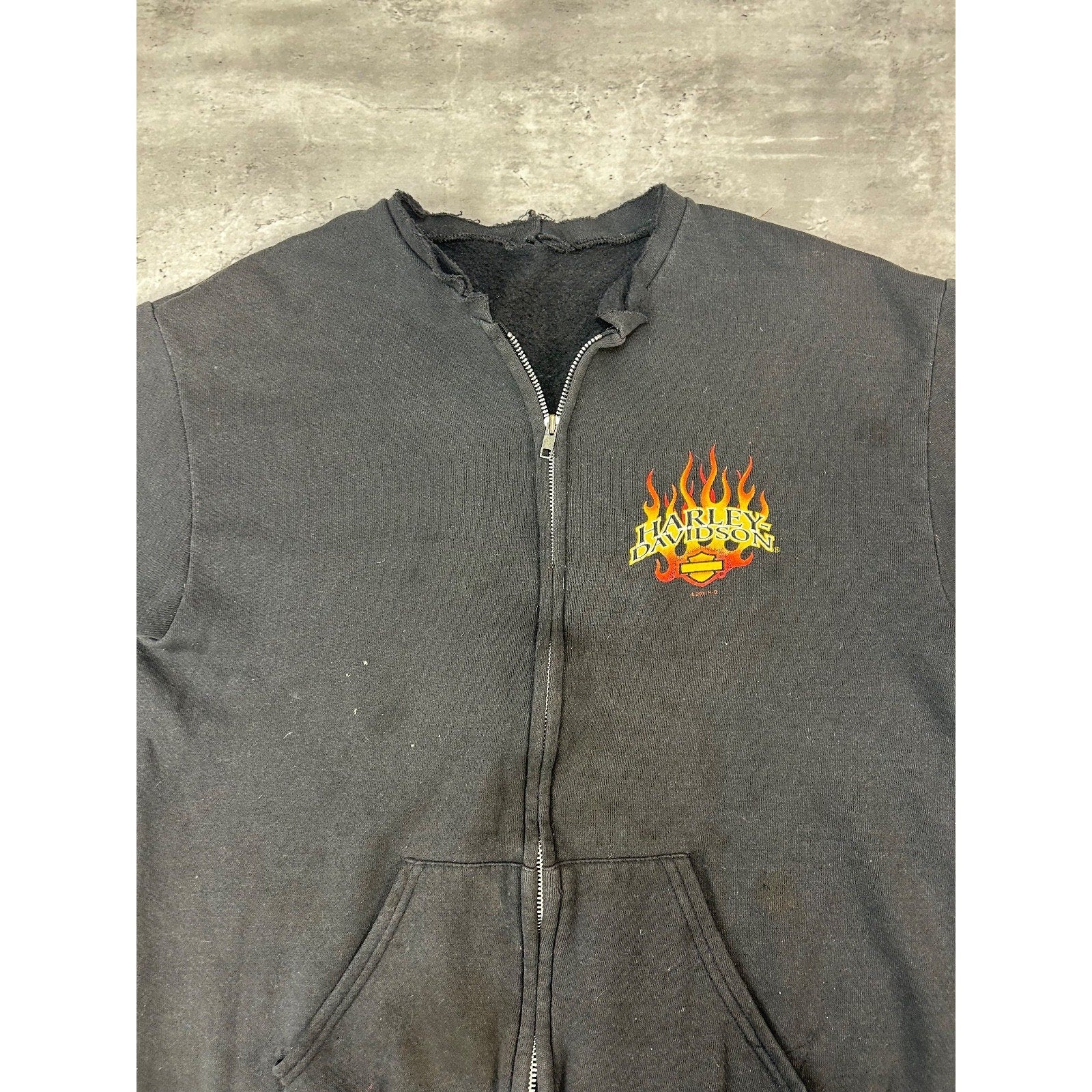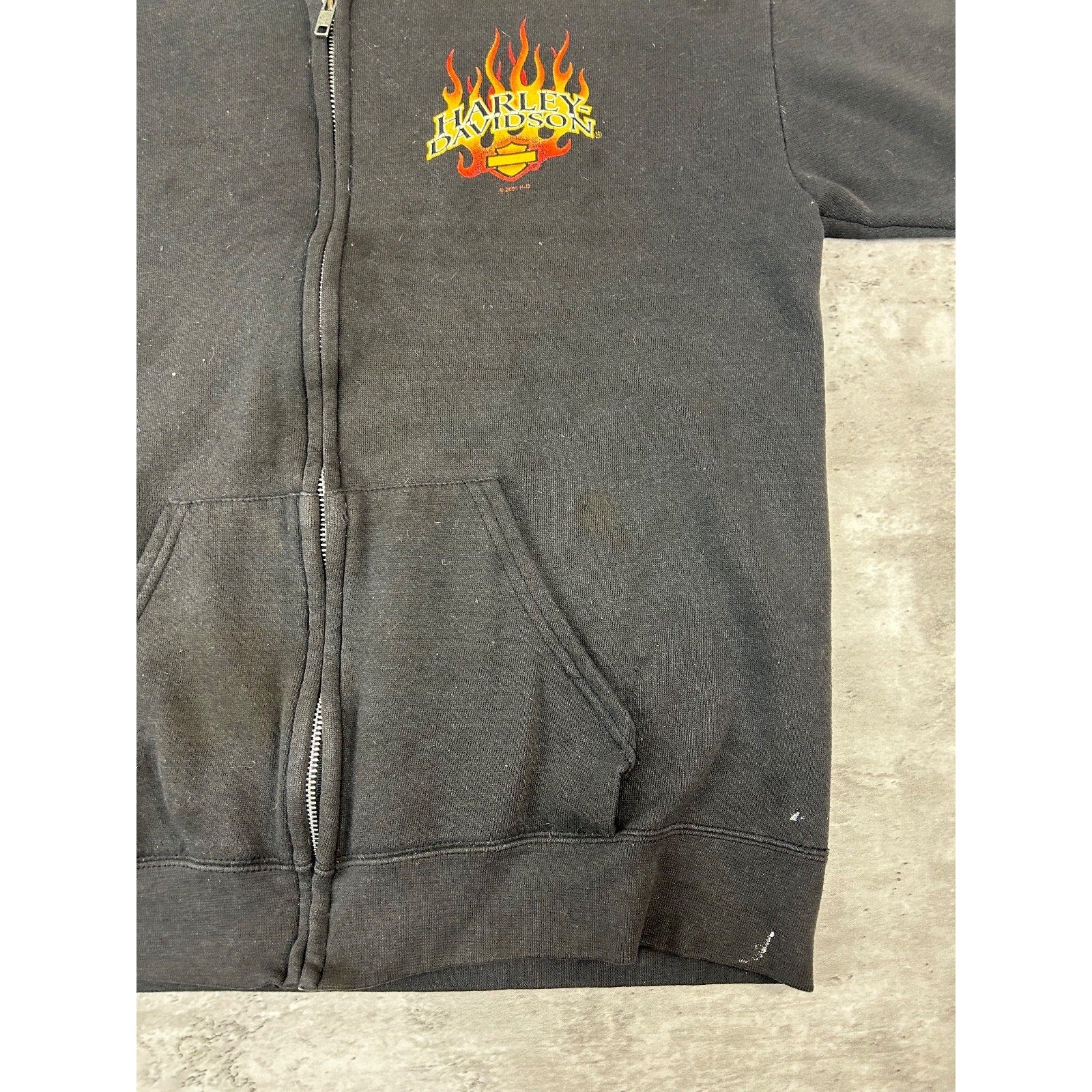 Vintage 2001 Harley Davidson Flame Sleeve Classic Logo Full Zip Sweatshirt Med