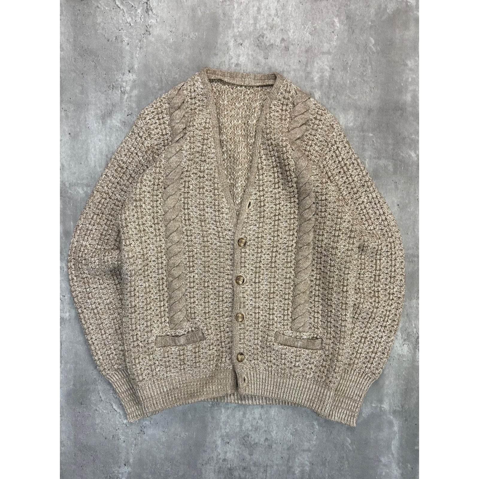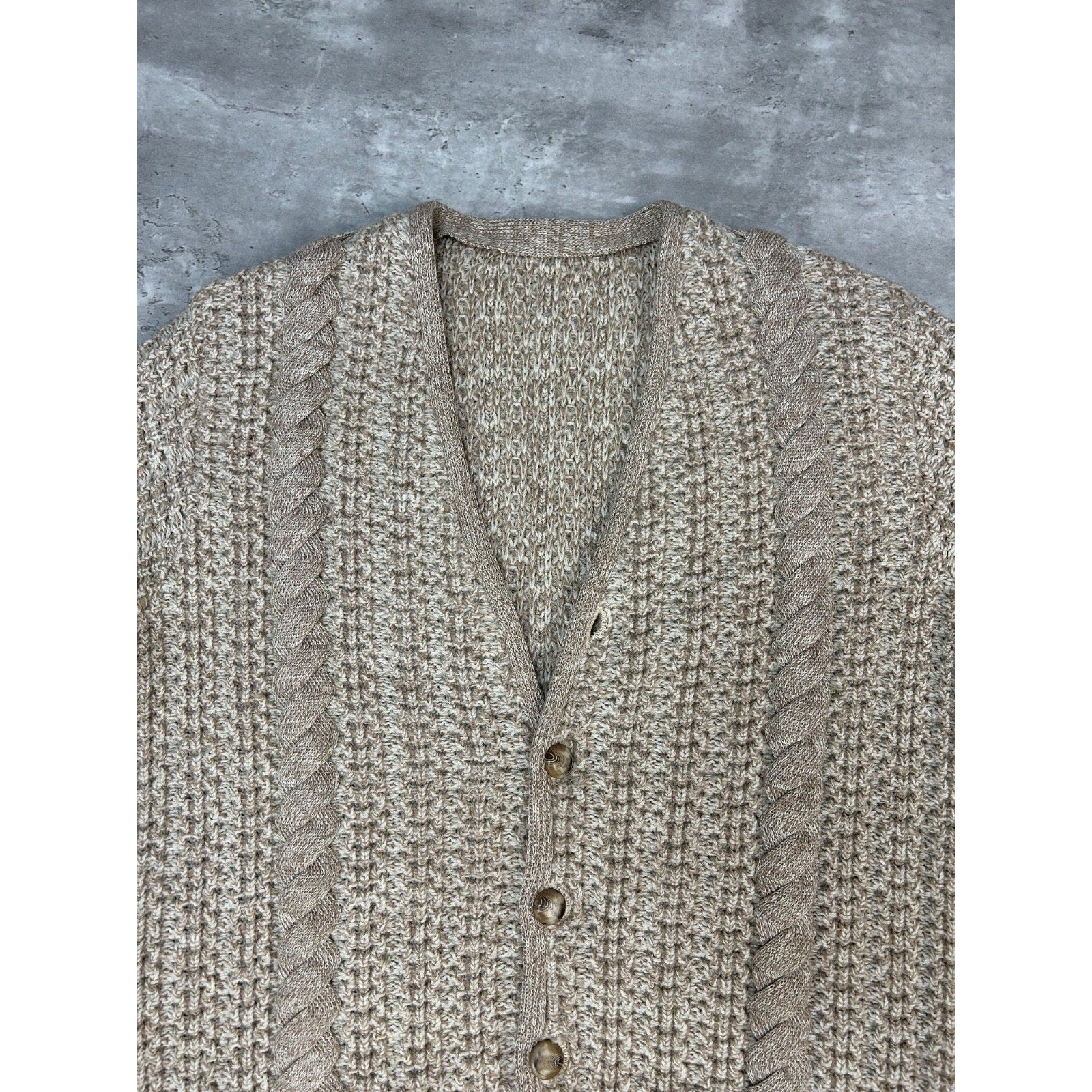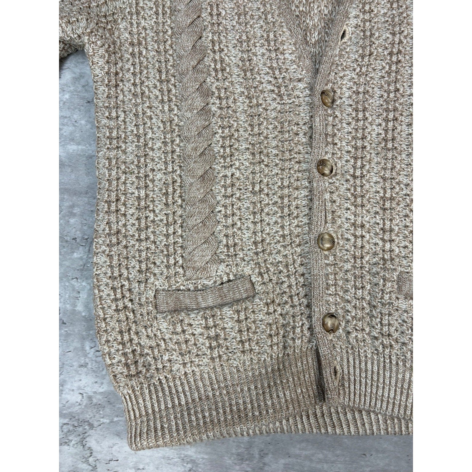 Vintage 80s/90s 3/4 Button Textured Knit Cardigan Sweater Size Large Beige