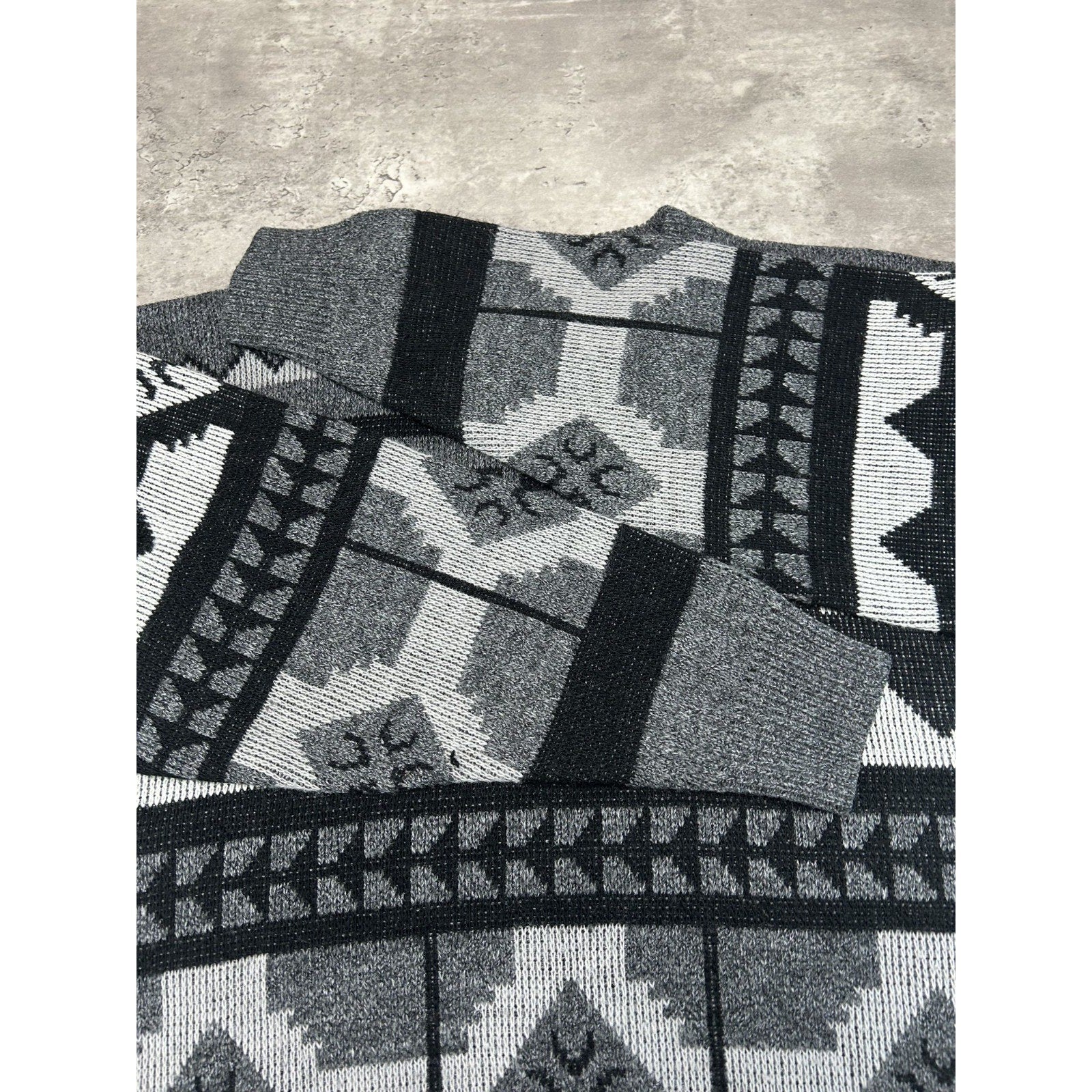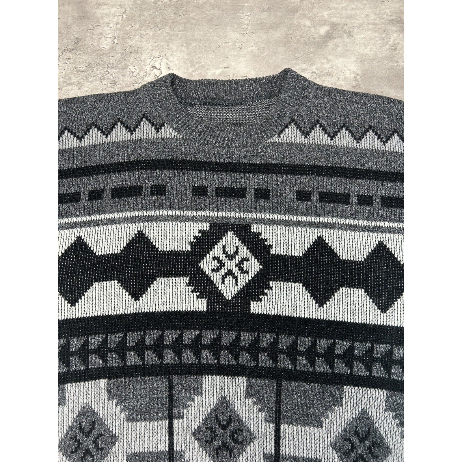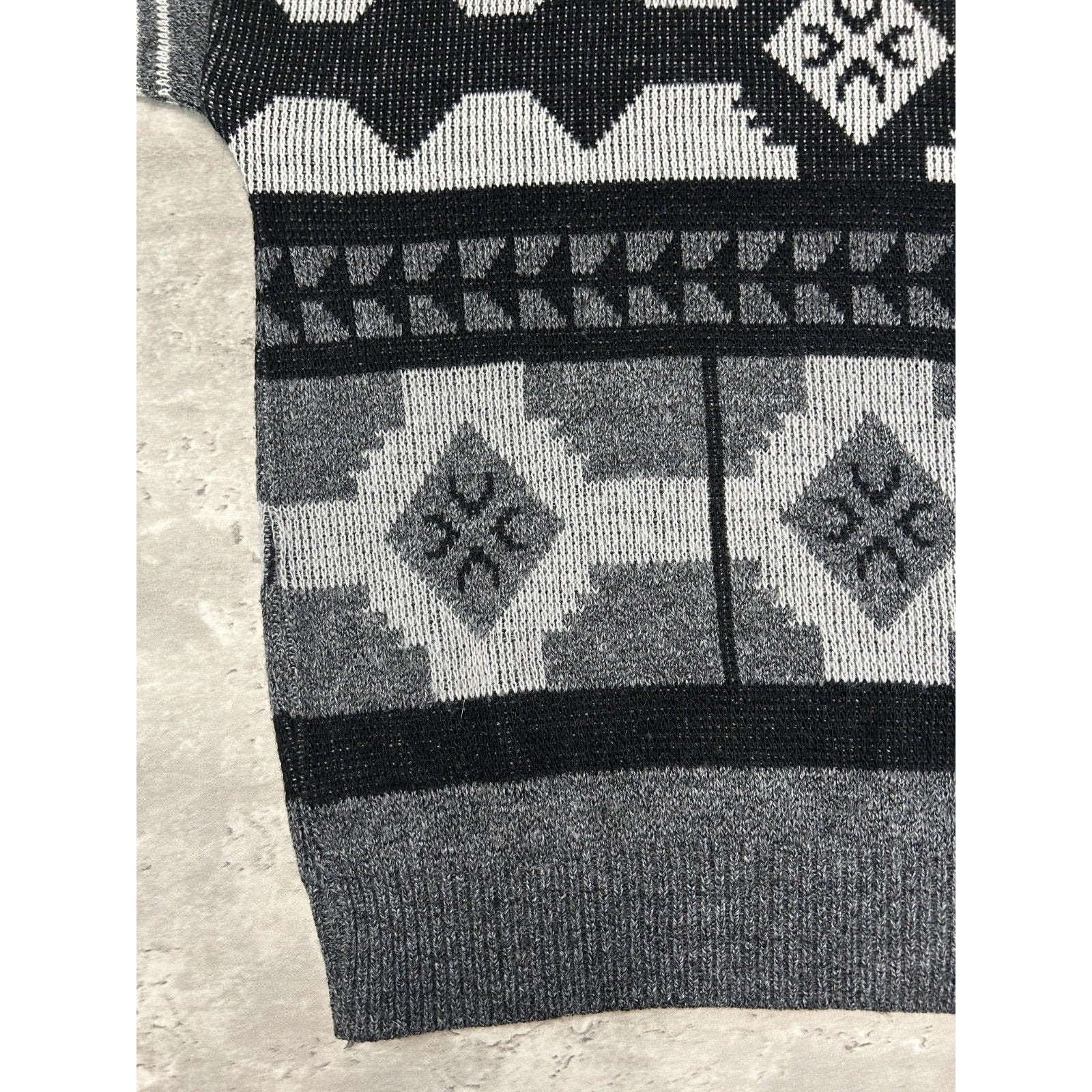 Vintage 80s/90s Abstract Geometric Print Pullover Ribbed Knit Sweater Sz Medium