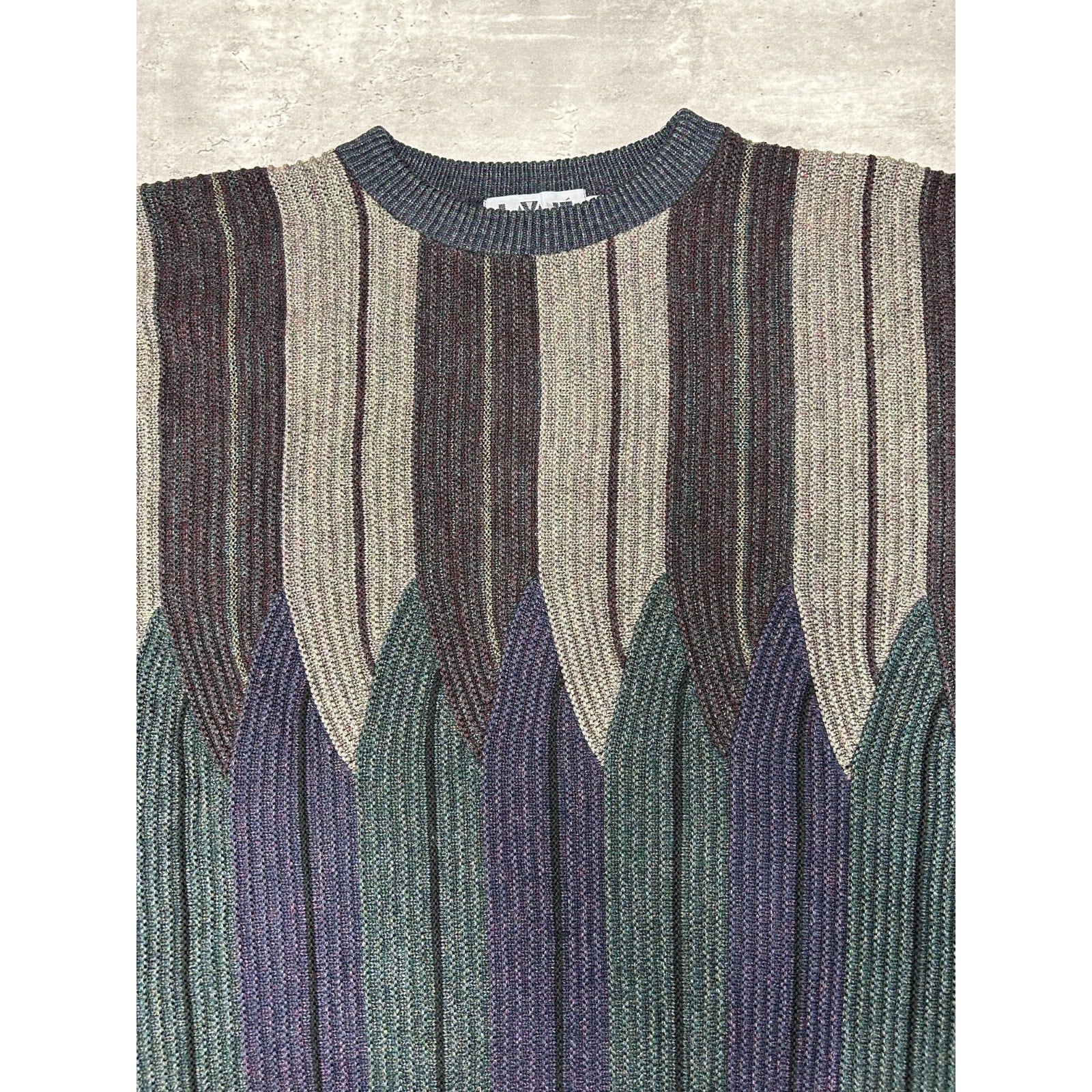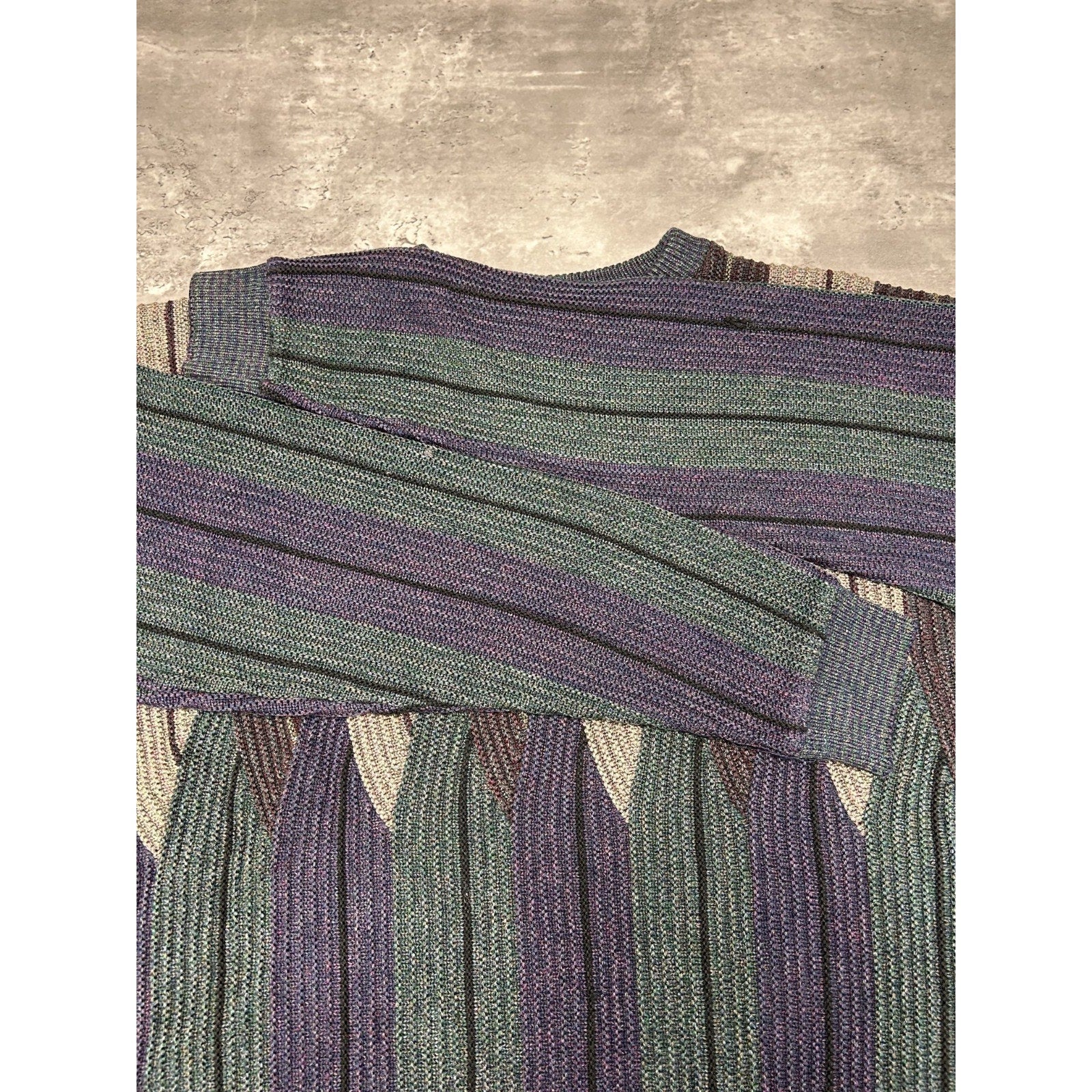 Vintage 80s/90s Abstract Striped Pullover Ribbed Knit Sweater Size 2XL