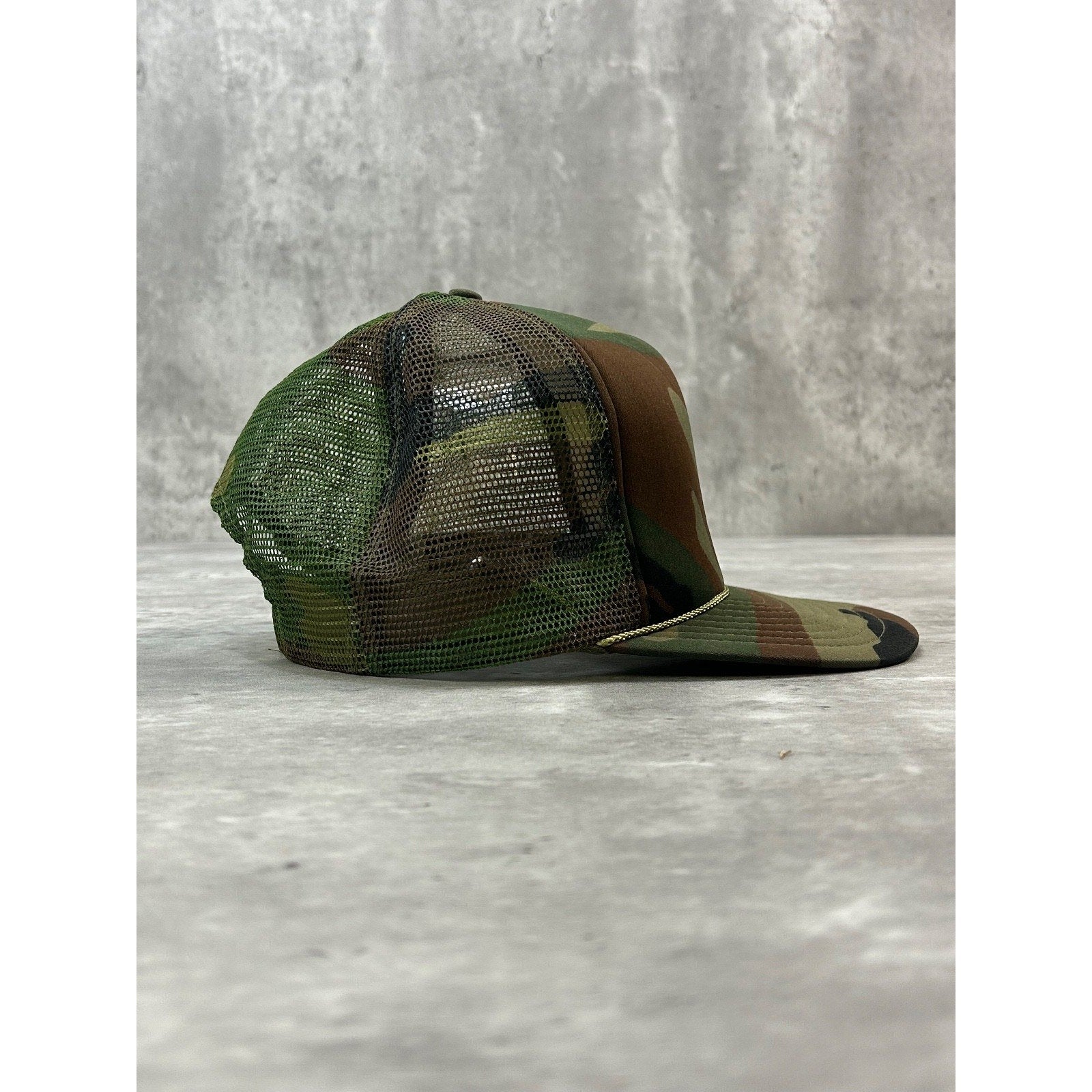 Vintage 80s/90s Woodland Camo Hunting Trucker Snapback Hat OSFA
