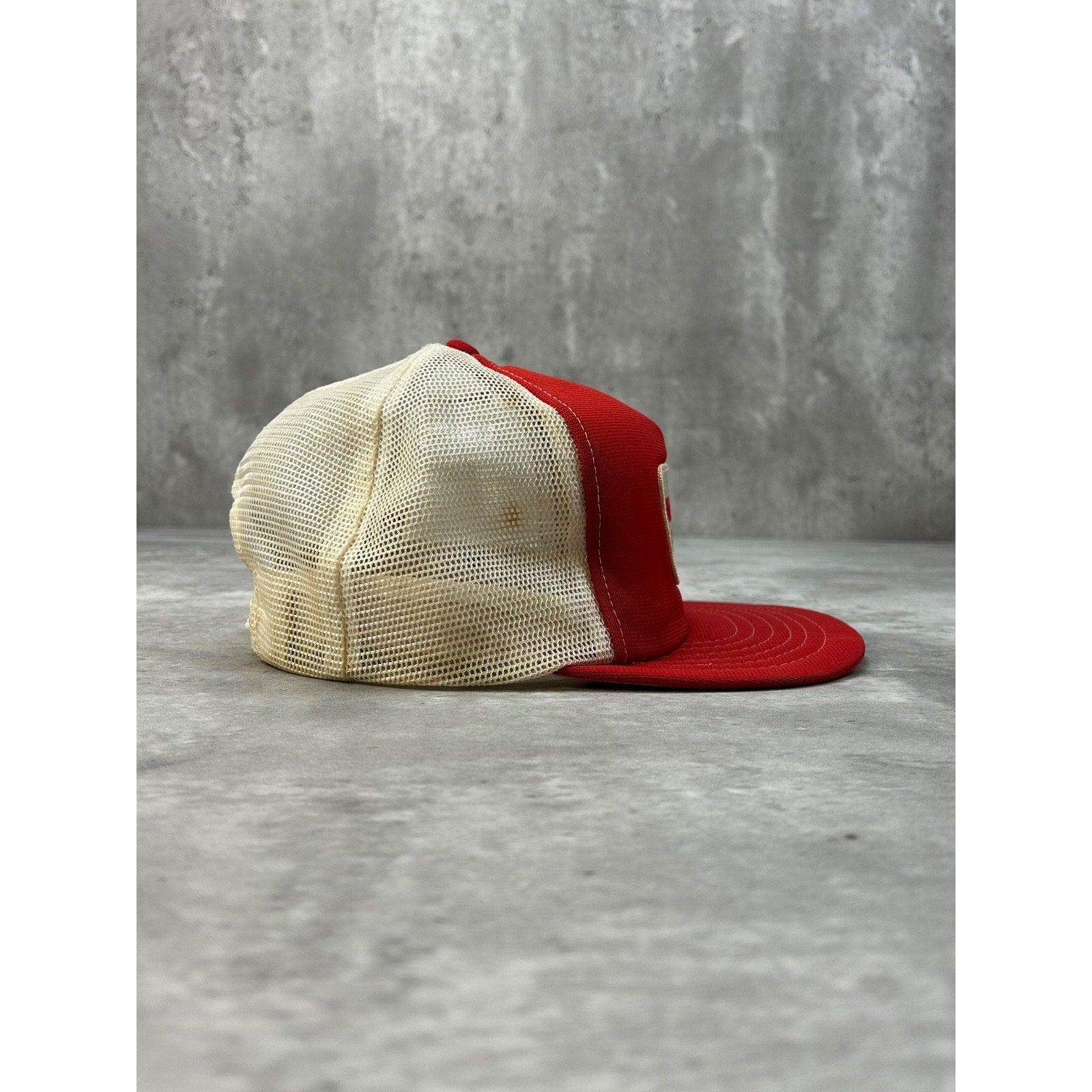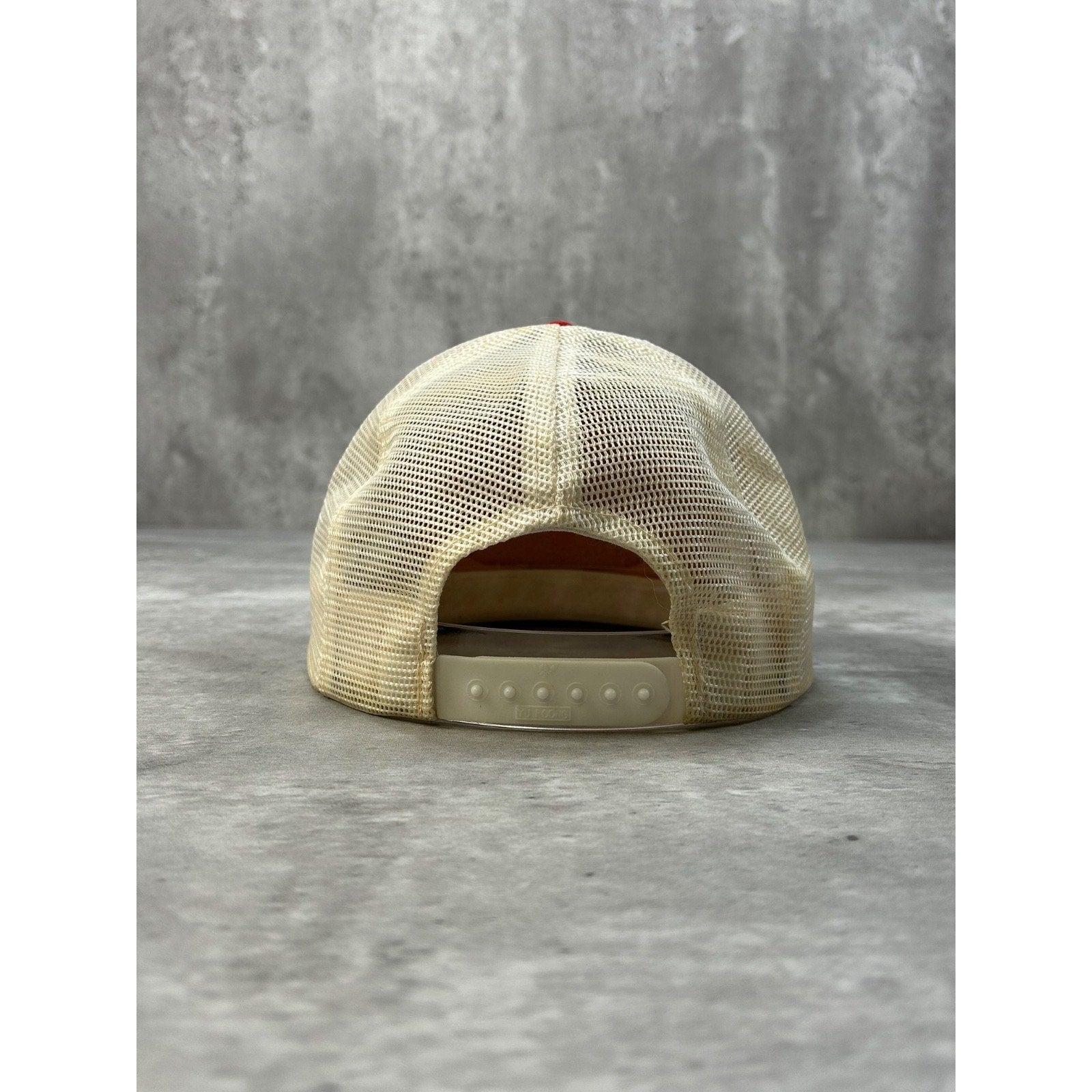 Wear, fading due to age. Yellowing and light marks found throughout. Loose stitching on brim. Wear on sweatband.