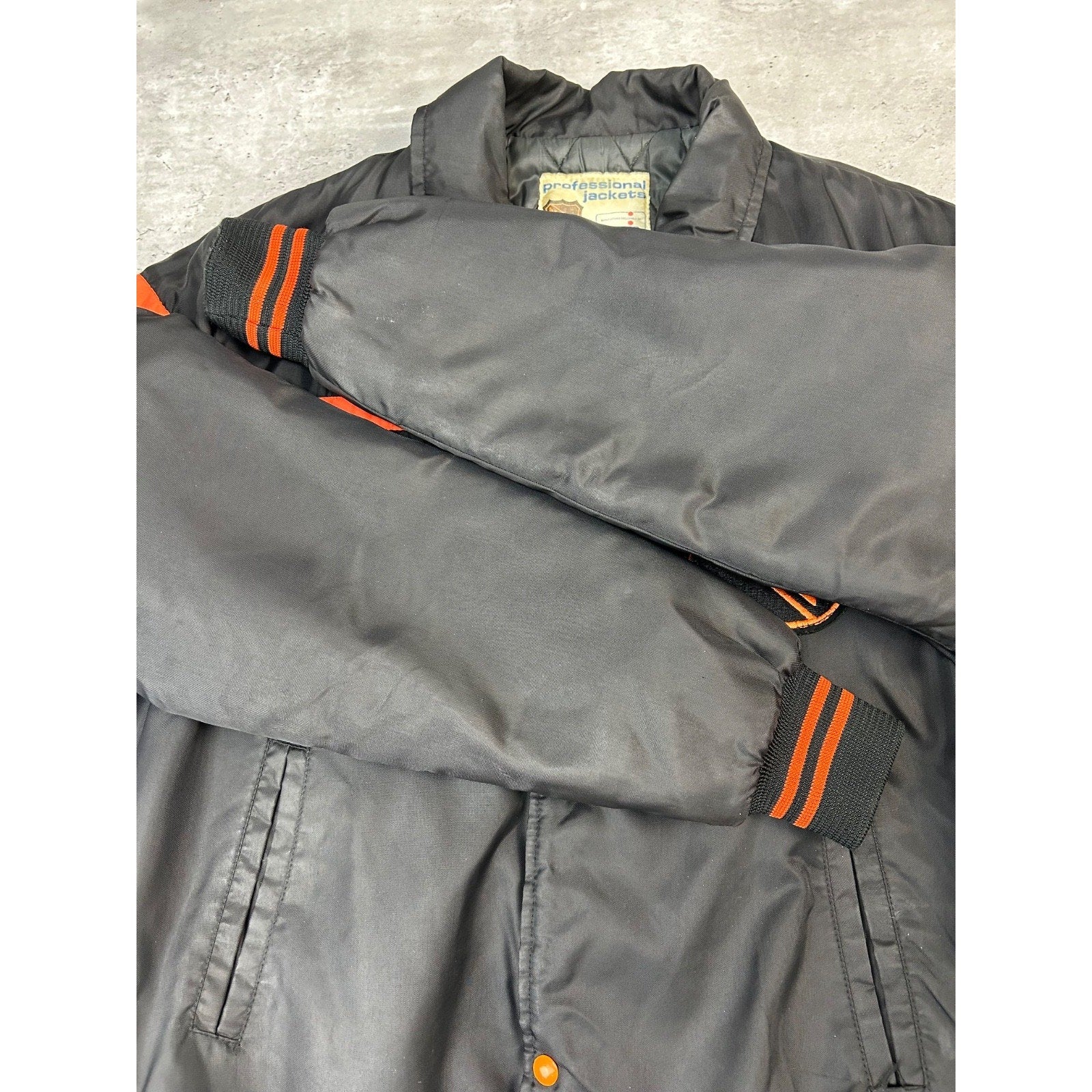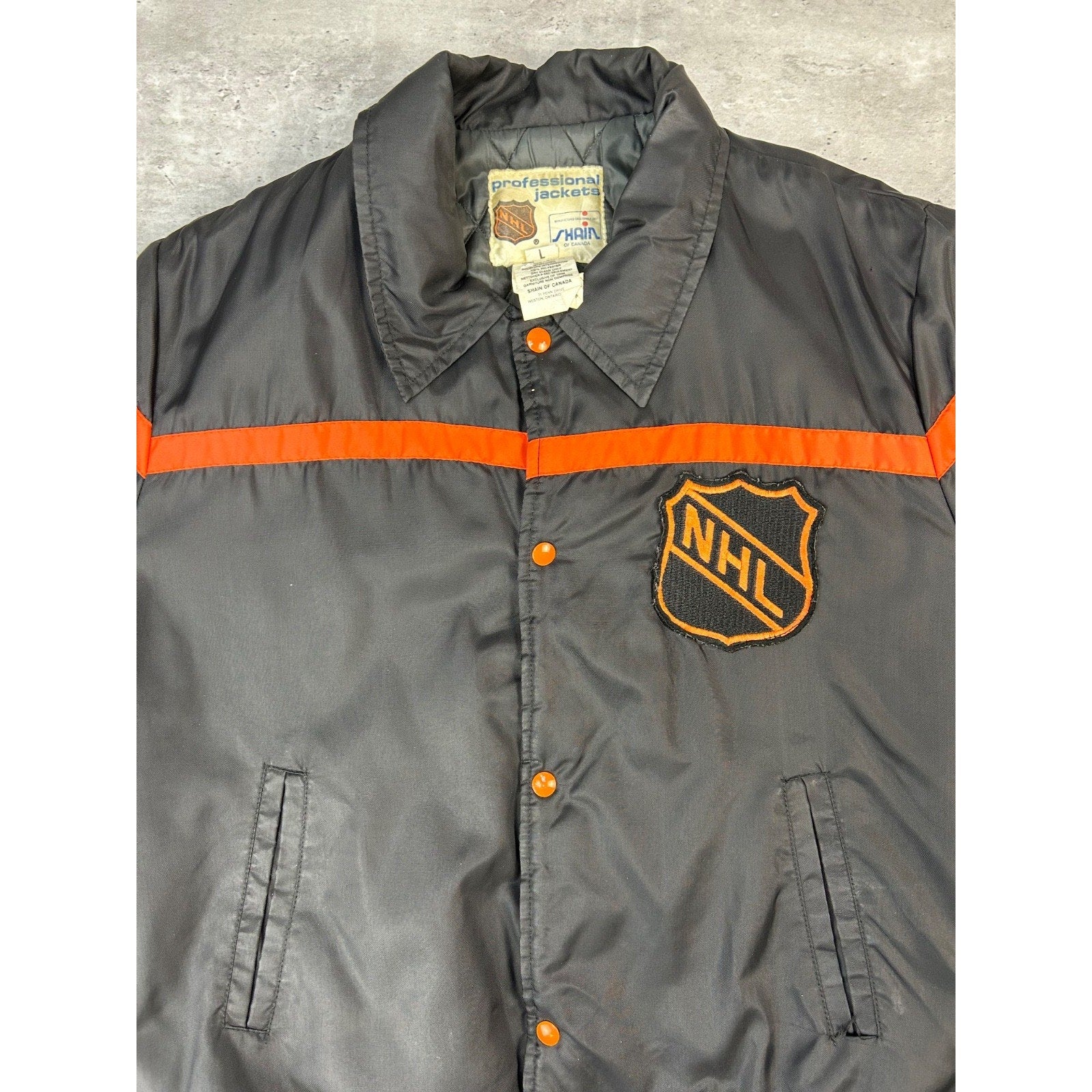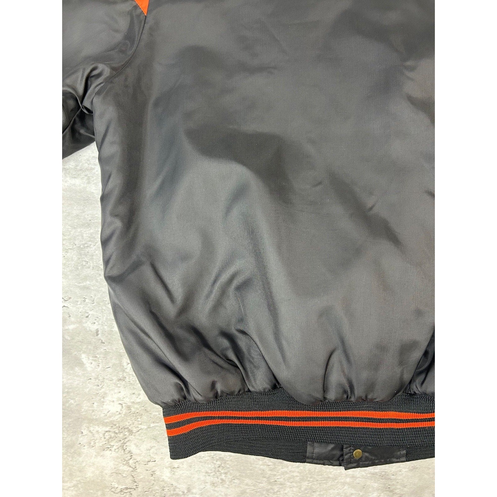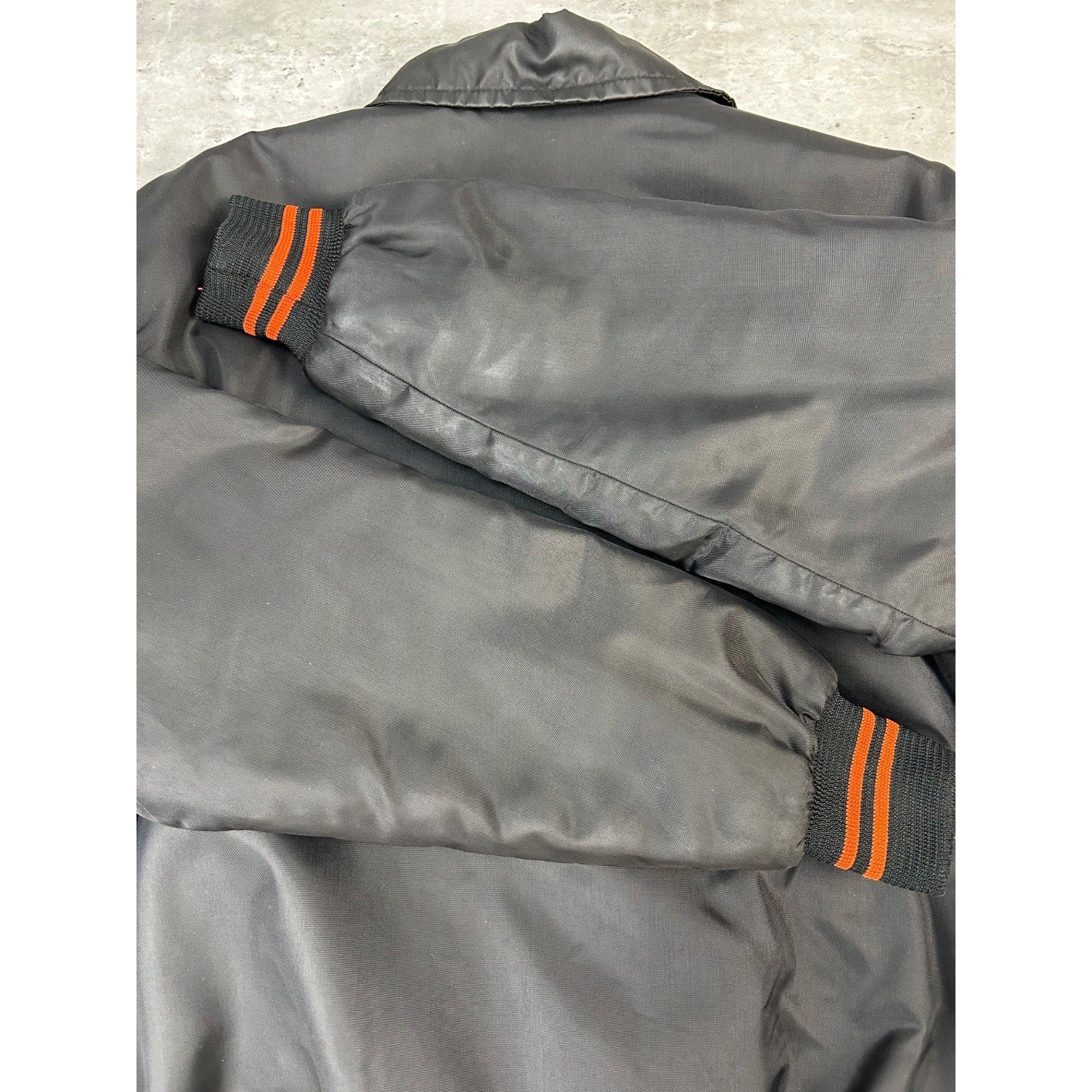 Vintage 80s NHL Embroidered Patch Hockey Bomber Jacket Size Large Black