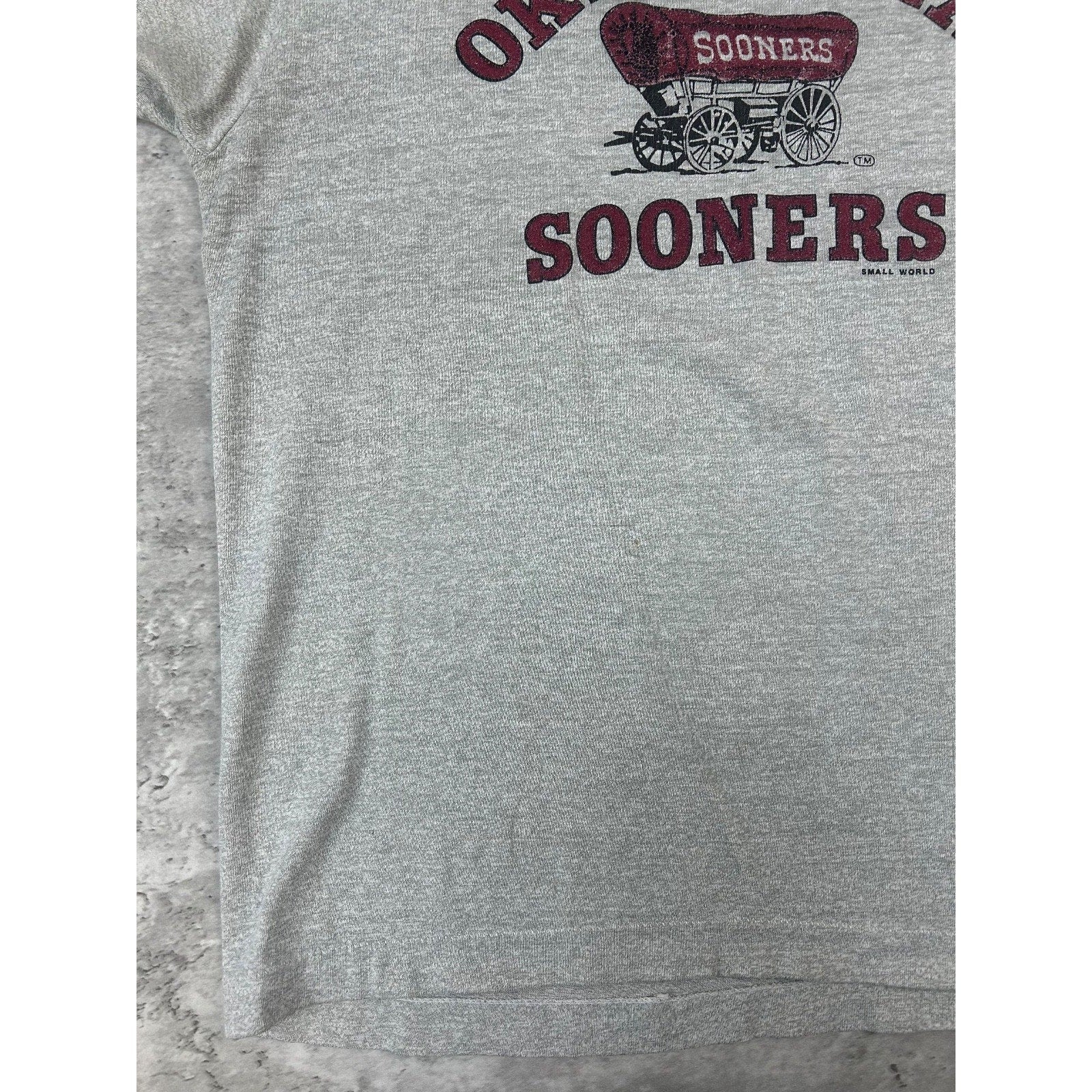 Vintage 80s Oklahoma Sooners NCAA Collegiate Spellout Graphic T-Shirt Size Large