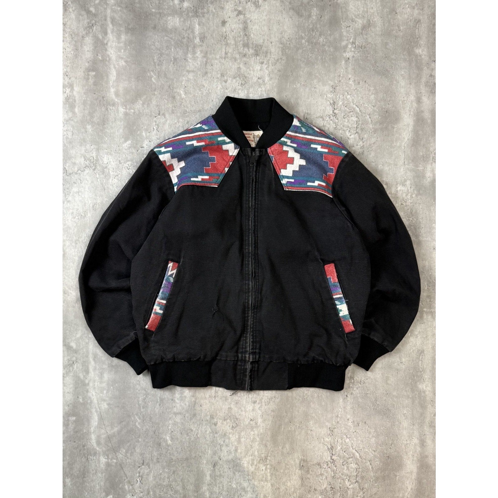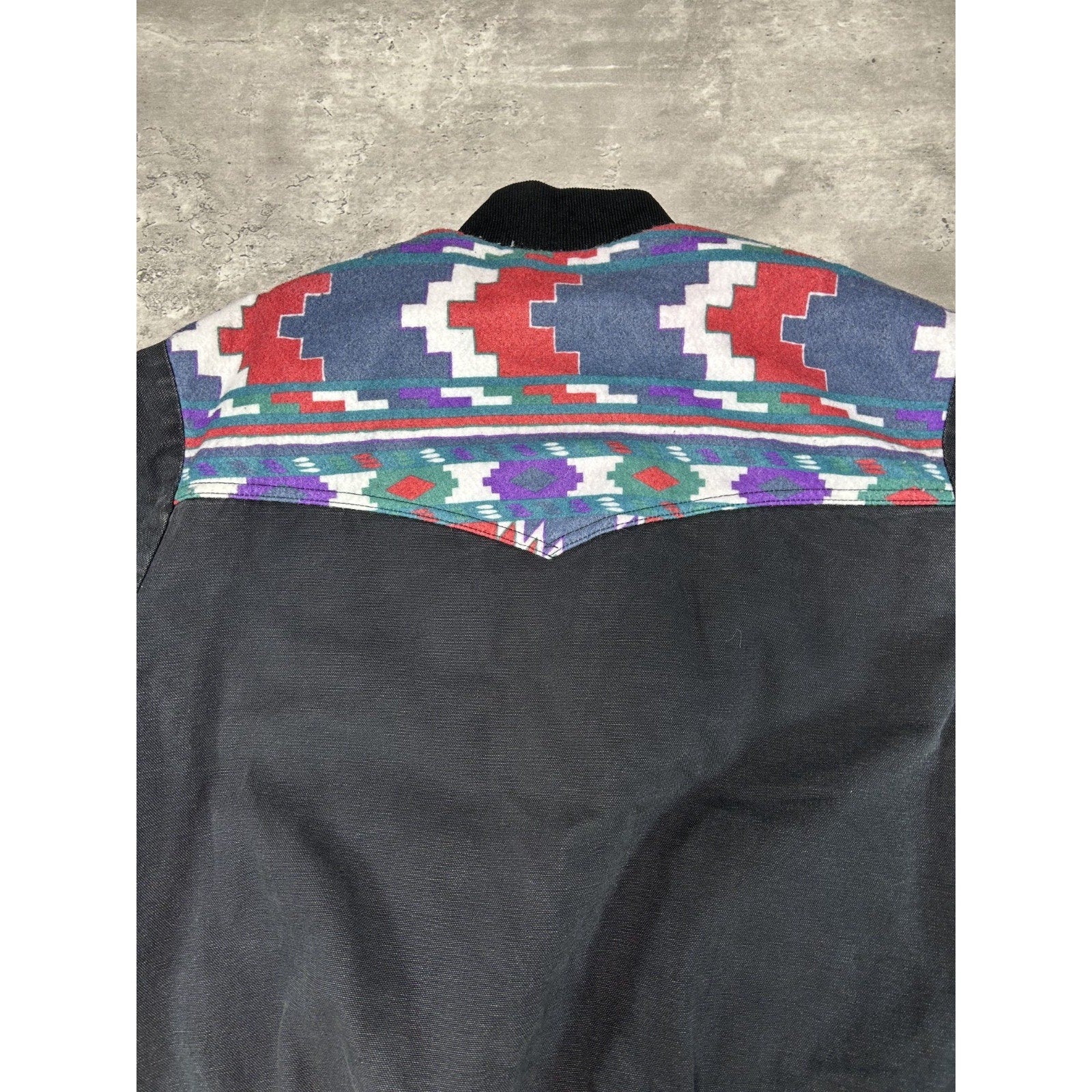 Vintage 80s Saddle King Western Aztec Full Zip Bomber Jacket Size XL Black