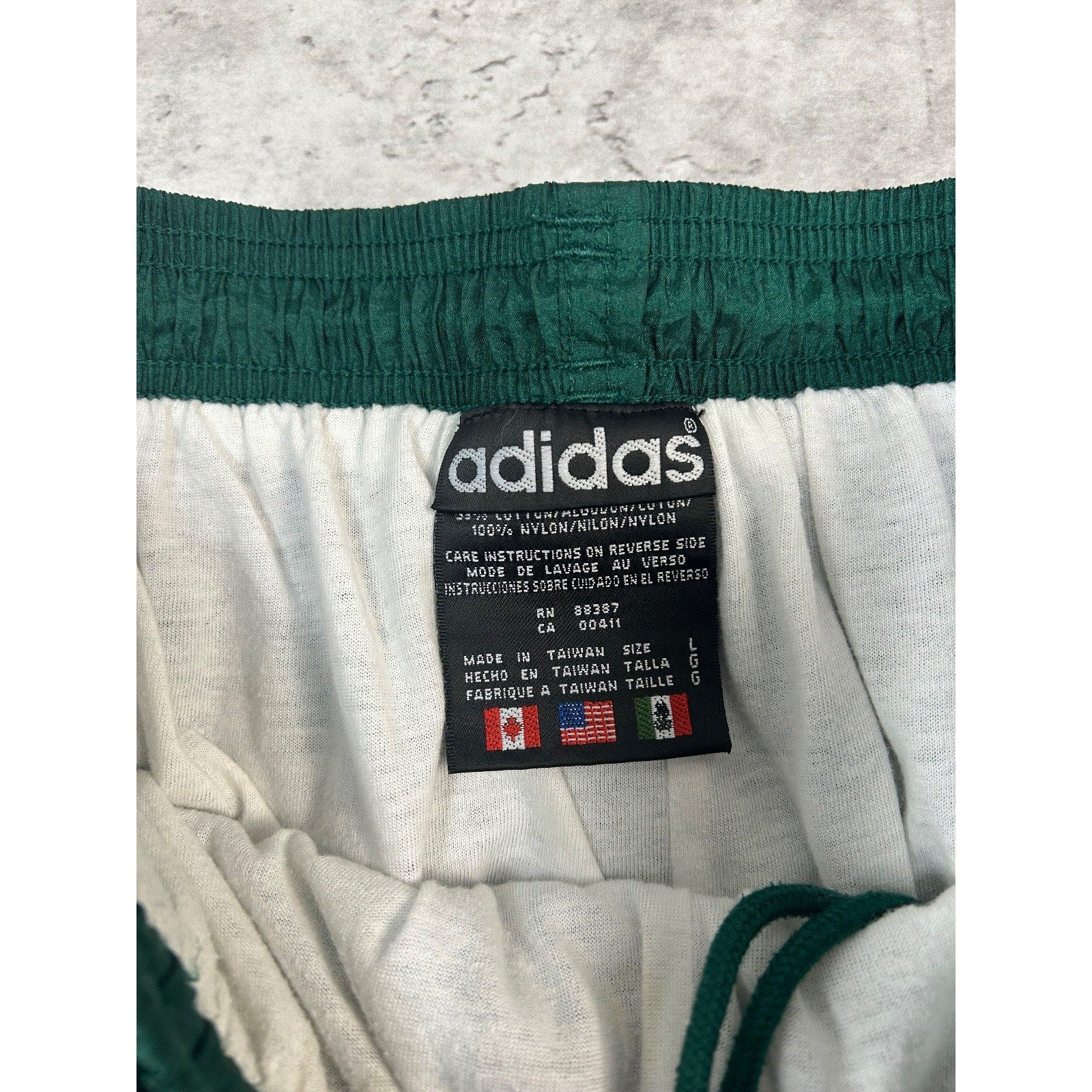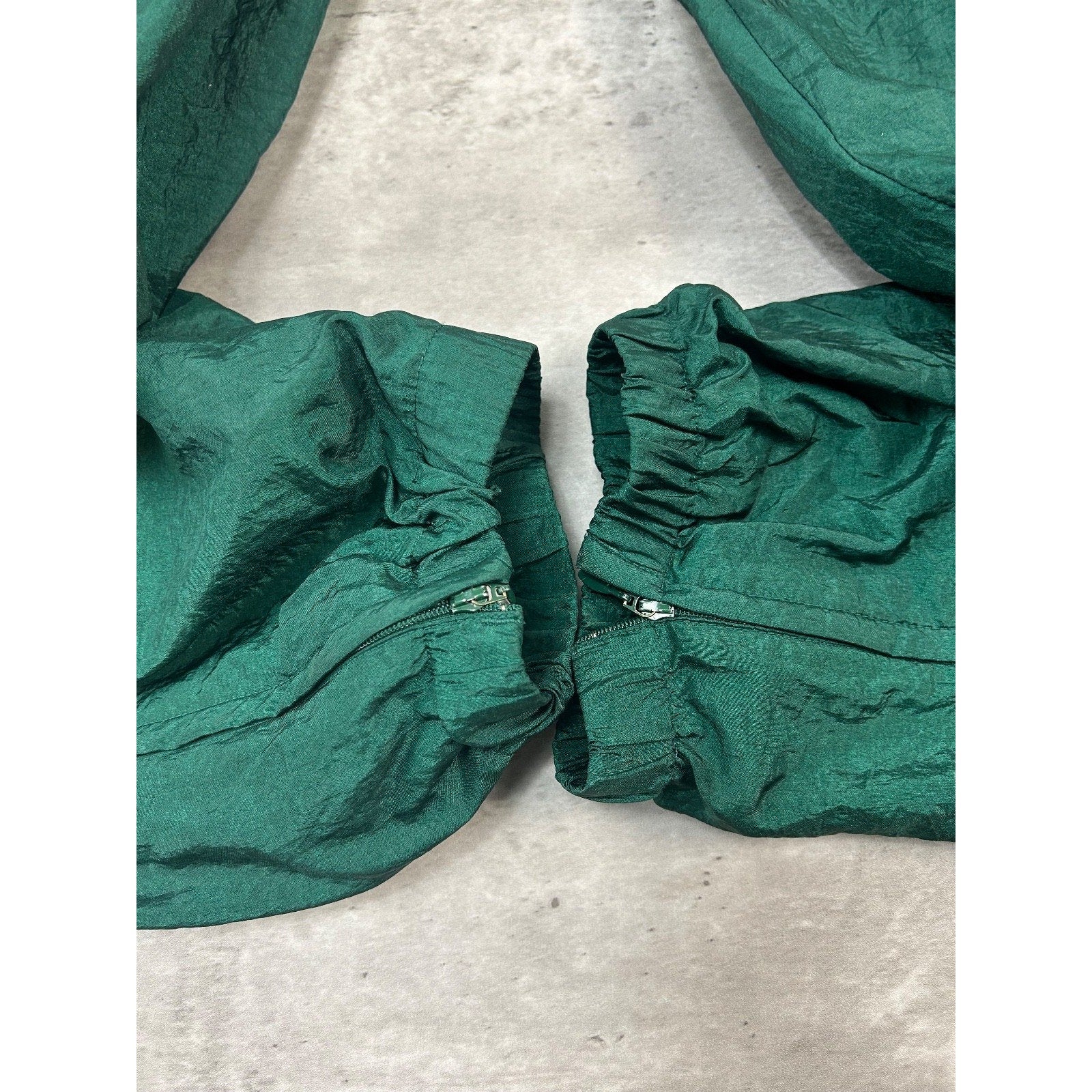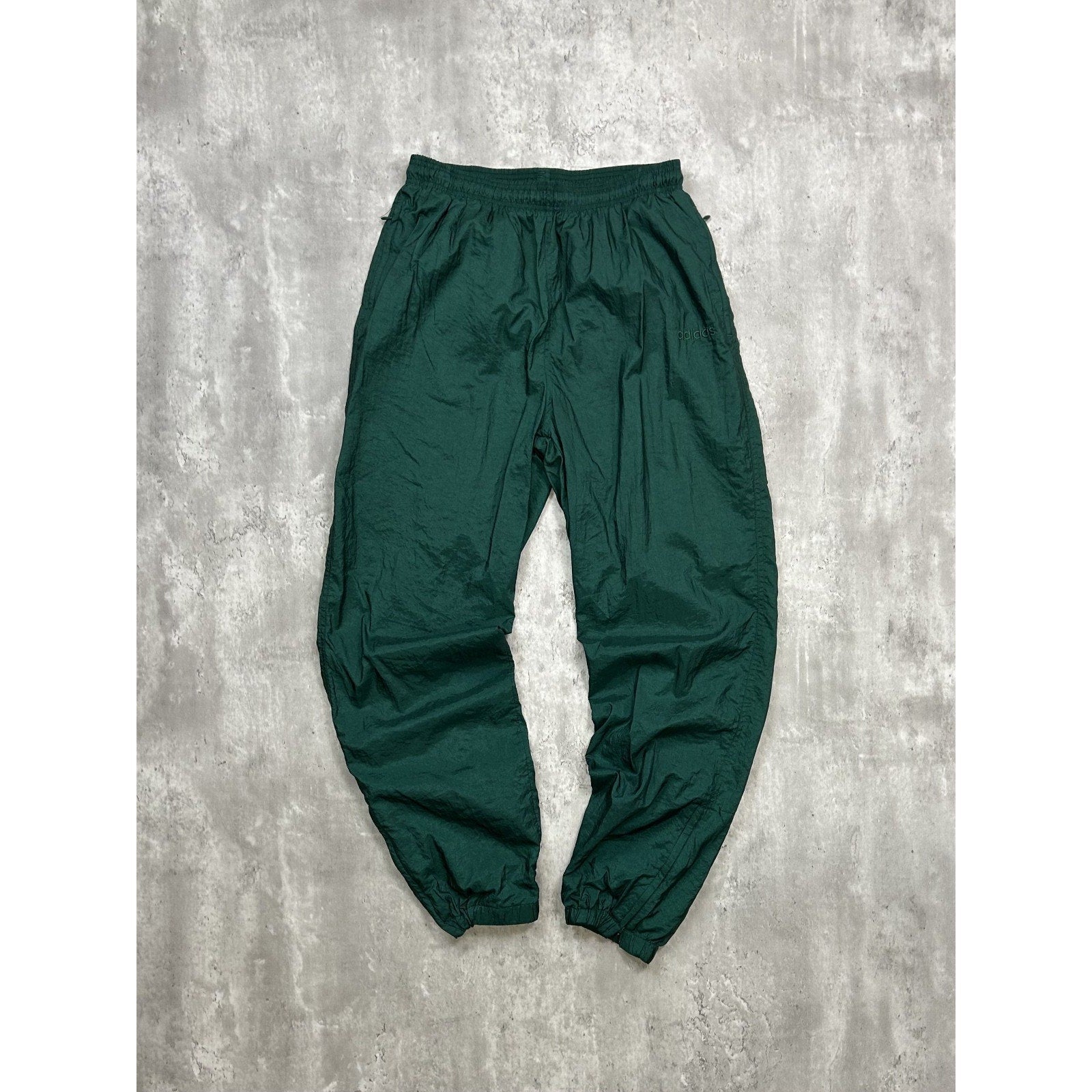 Vintage 90s Adidas Tonal Embroidered Spellout Nylon Track Pants Size Large Green
