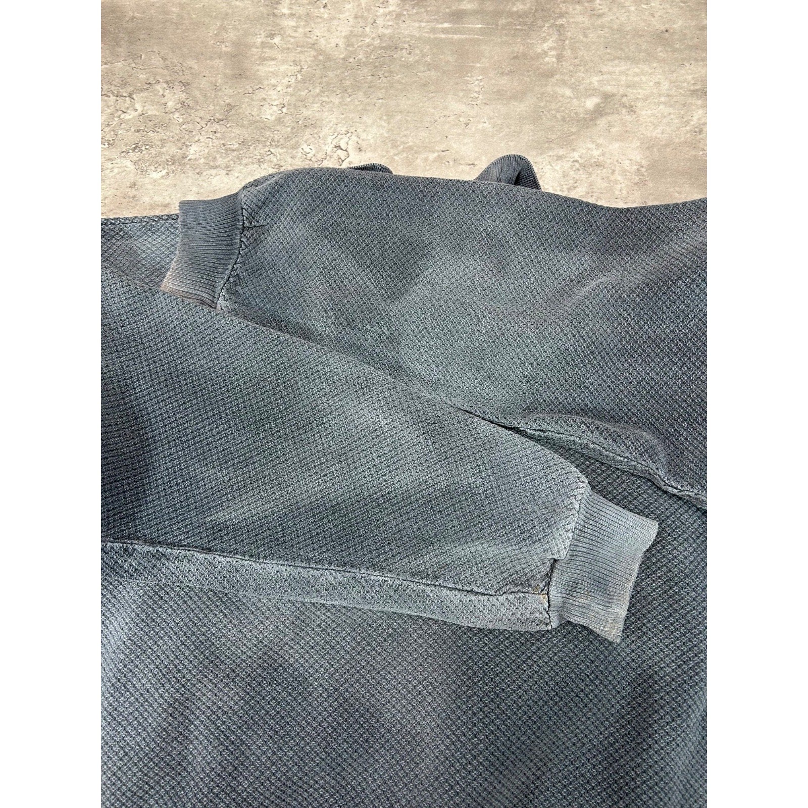 General wear, fading due to age. Marks, fraying, and distressing found around, mostly on sleeve cuffs. Missing top button.
