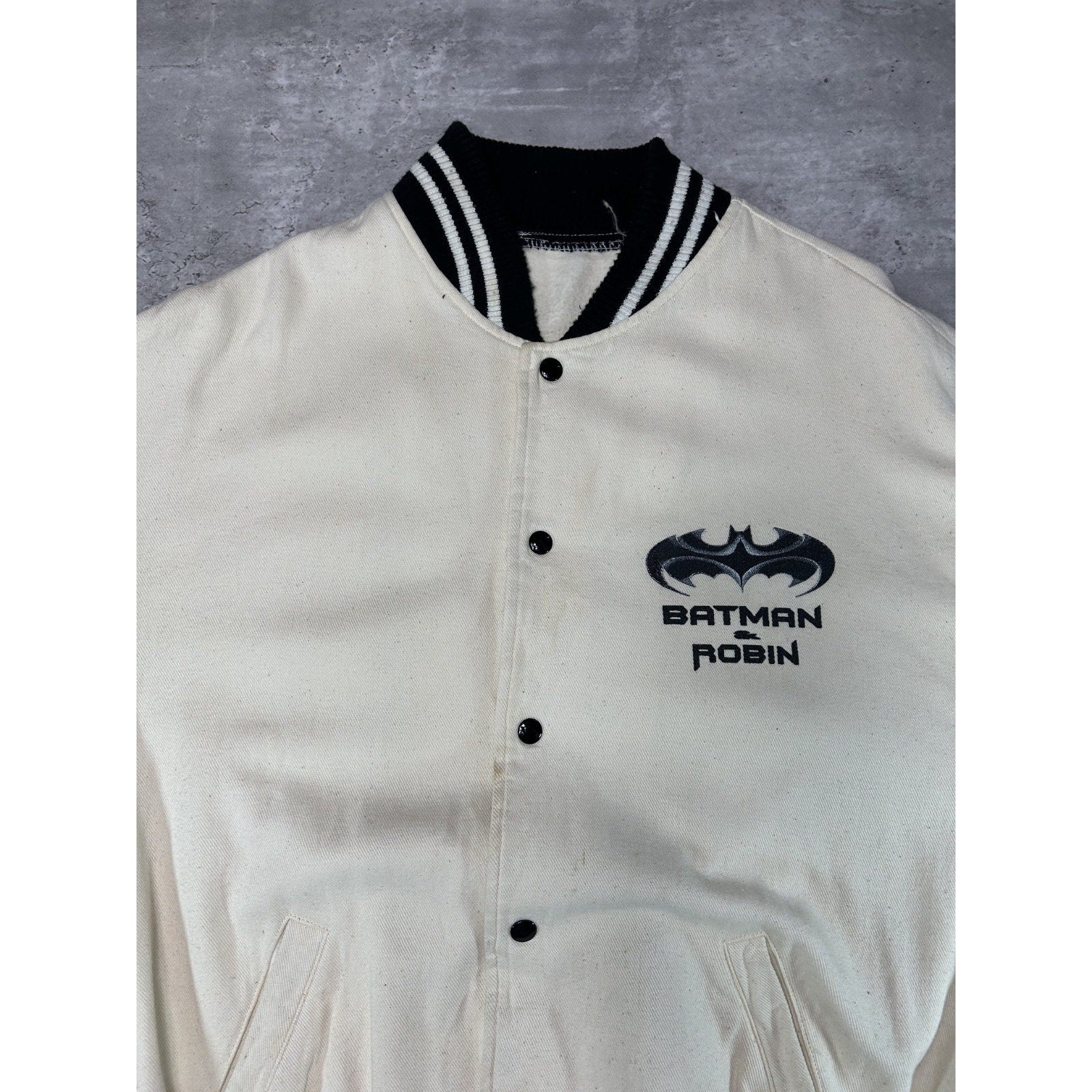 Vintage 90s Batman & Robin Logo Graphic Movie Promo Bomber Jacket Size 2XL