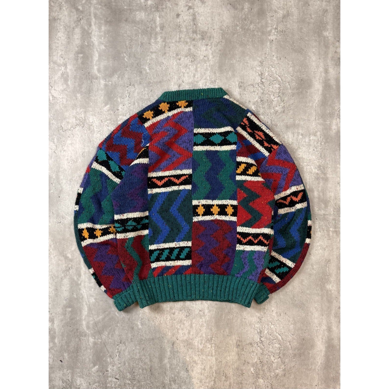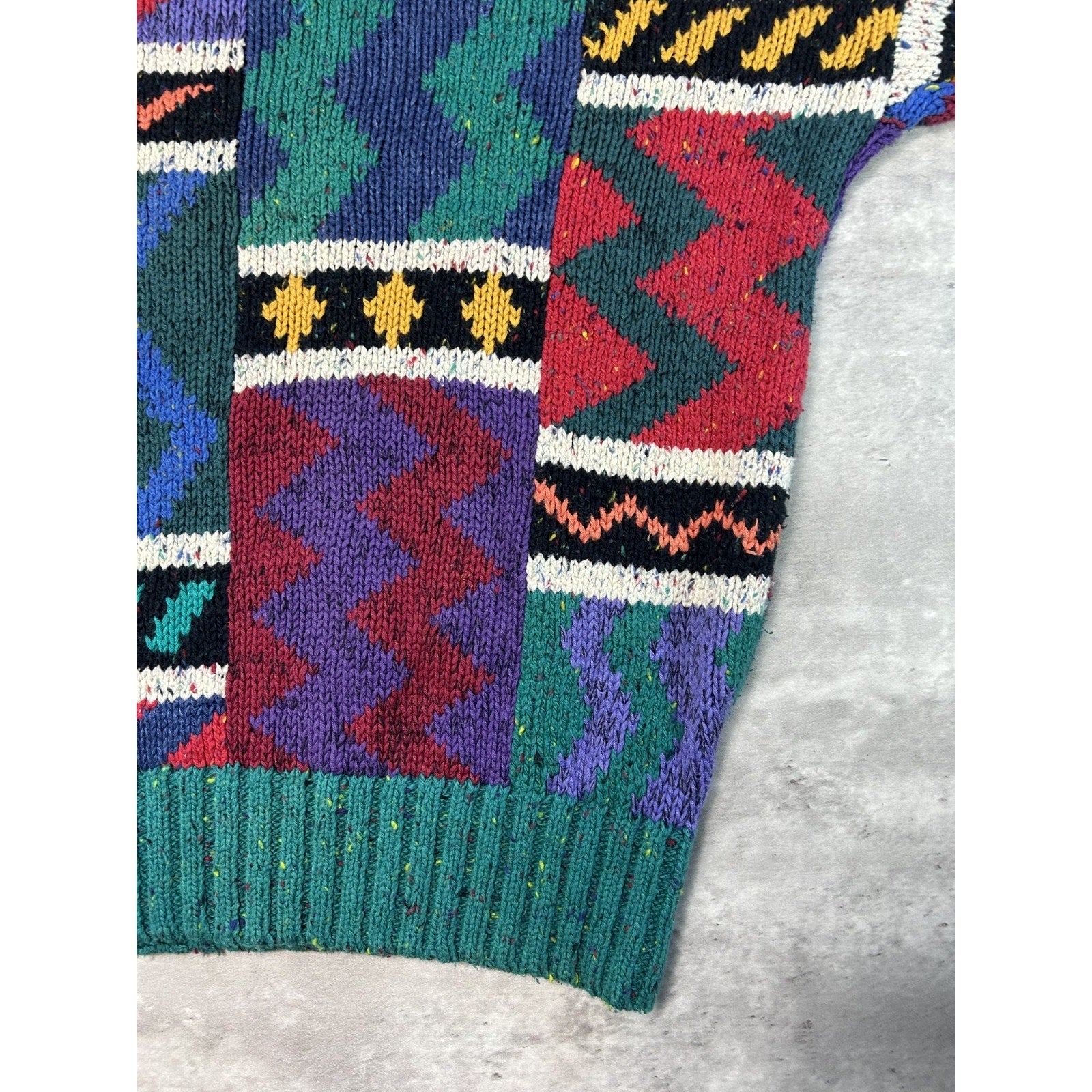 Vintage 90s Boston Traders Abstract Geometric Pattern Knit Sweater Size Large