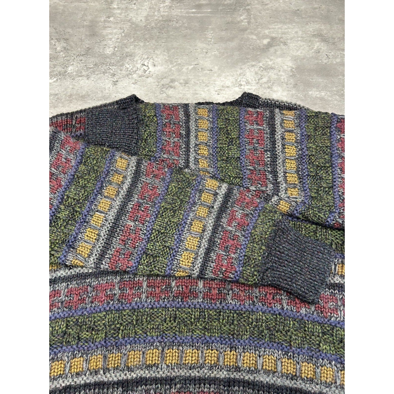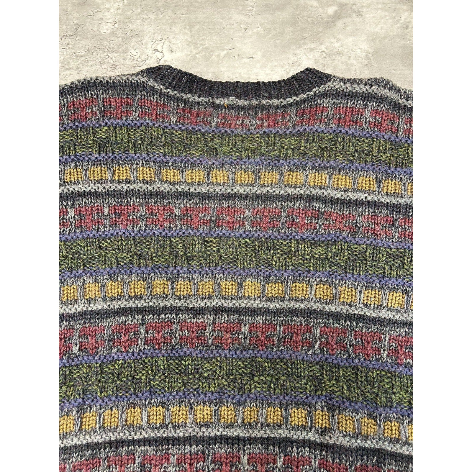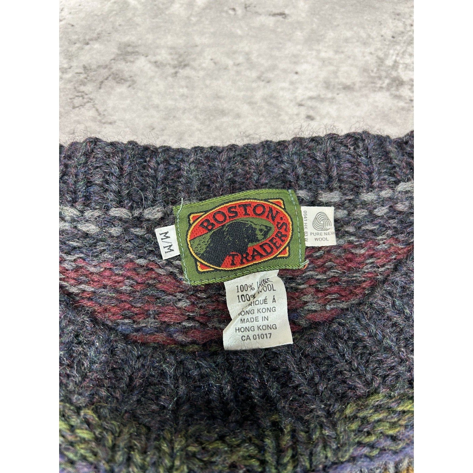 Vintage 90s Boston Traders Striped Print Pullover 100% Wool Knit Sweater Sz Med