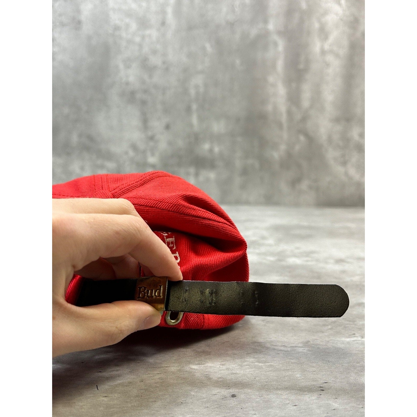 Vintage 90s Budweiser Embroidered Bud Spellout Beer Promo Strapback Hat OSFA