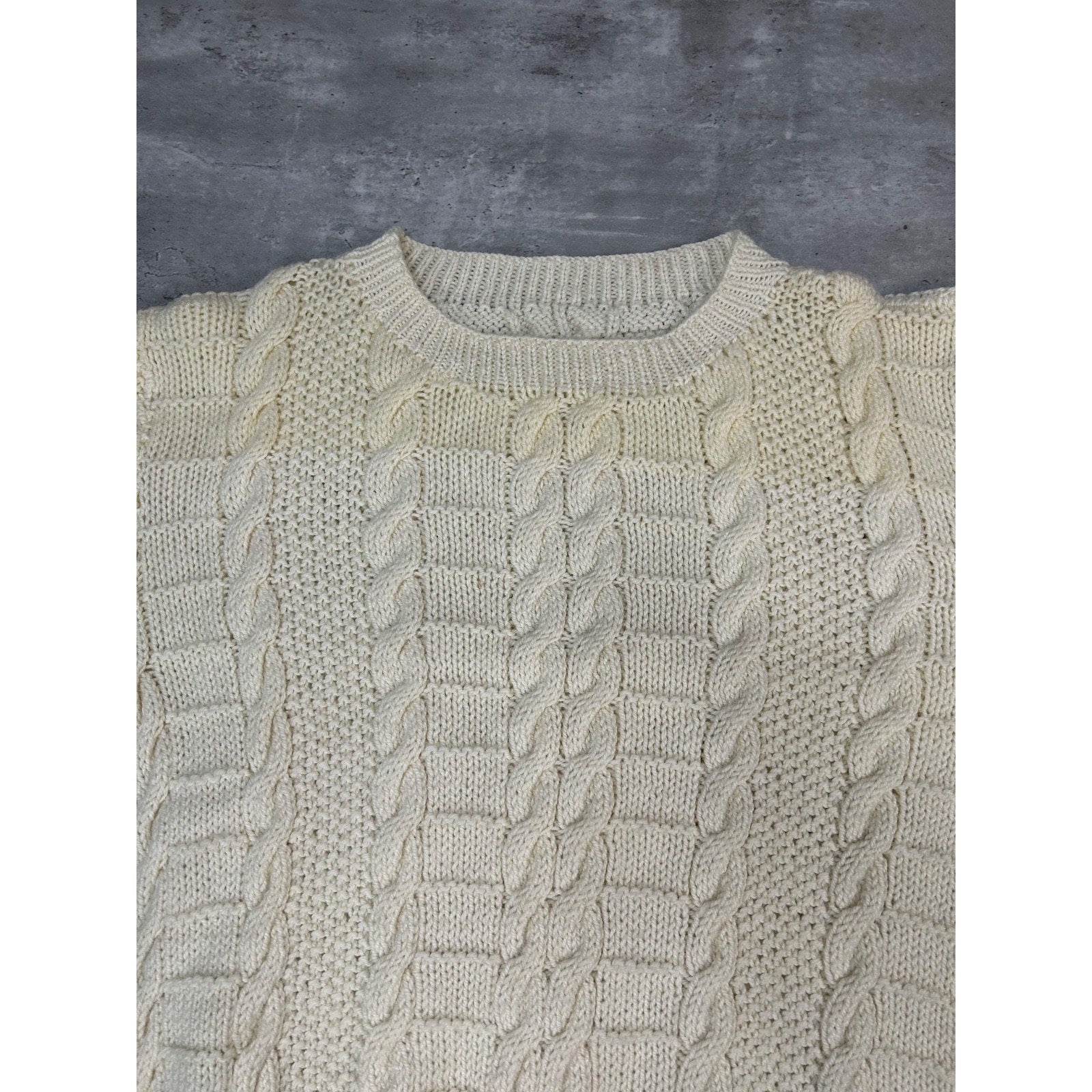 Vintage 90s Cable Knit Pullover Sweater Size XL Beige