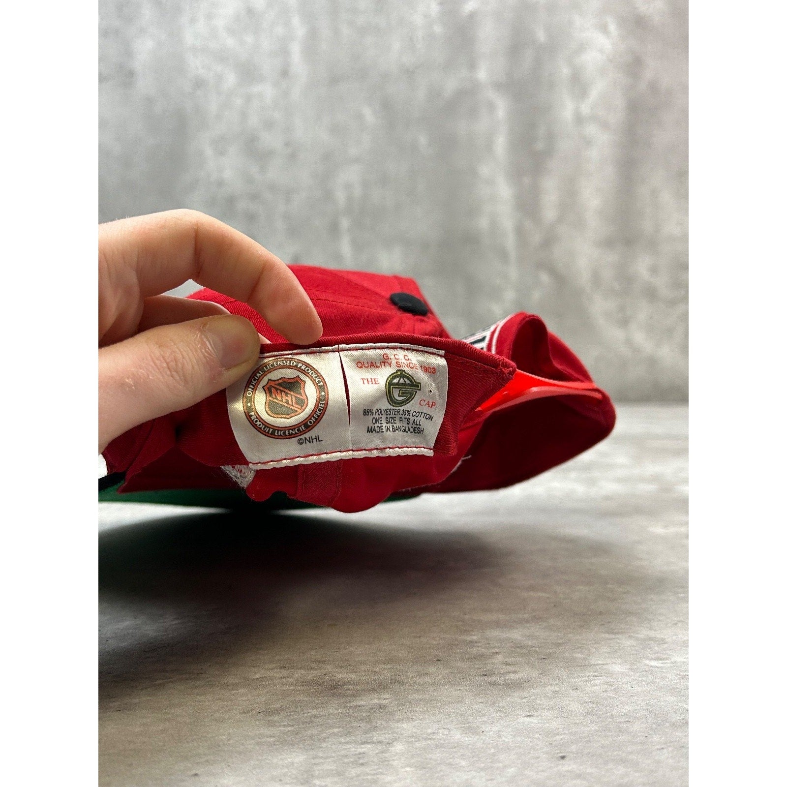 Vintage 90s Carolina Hurricanes NHL Embroidered Wave Spellout Snapback Hat OSFA