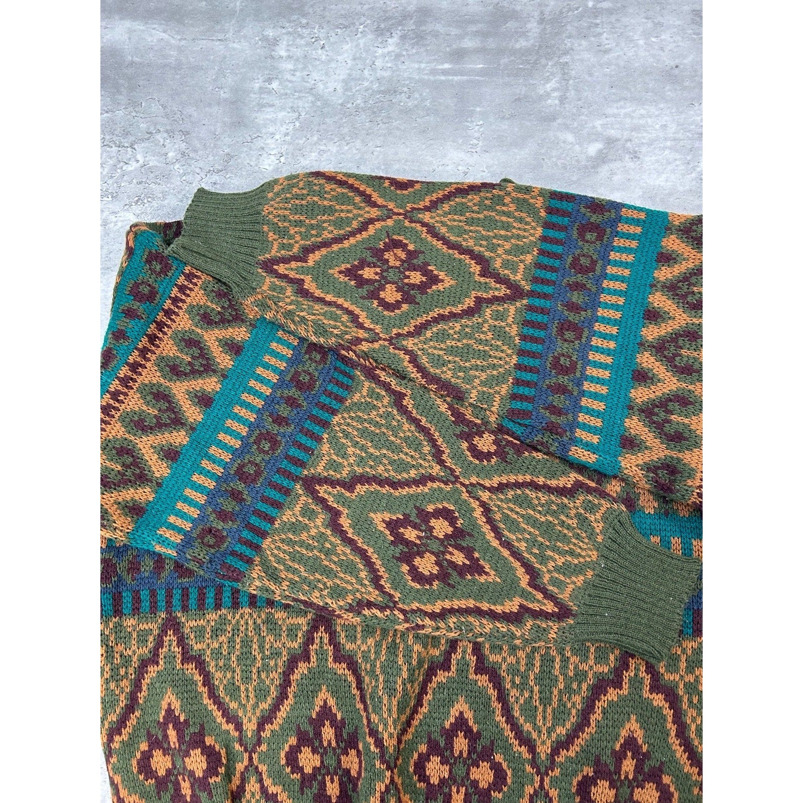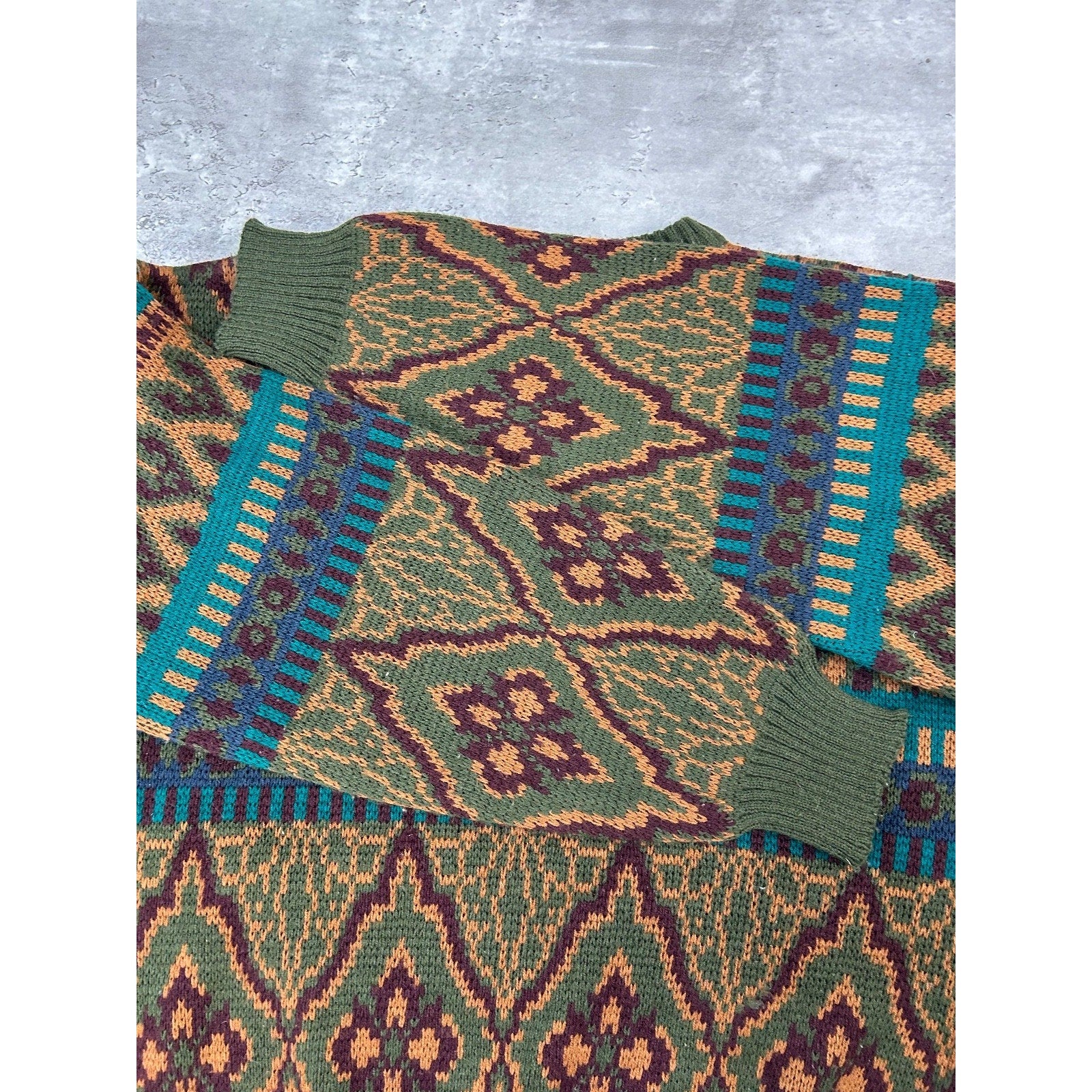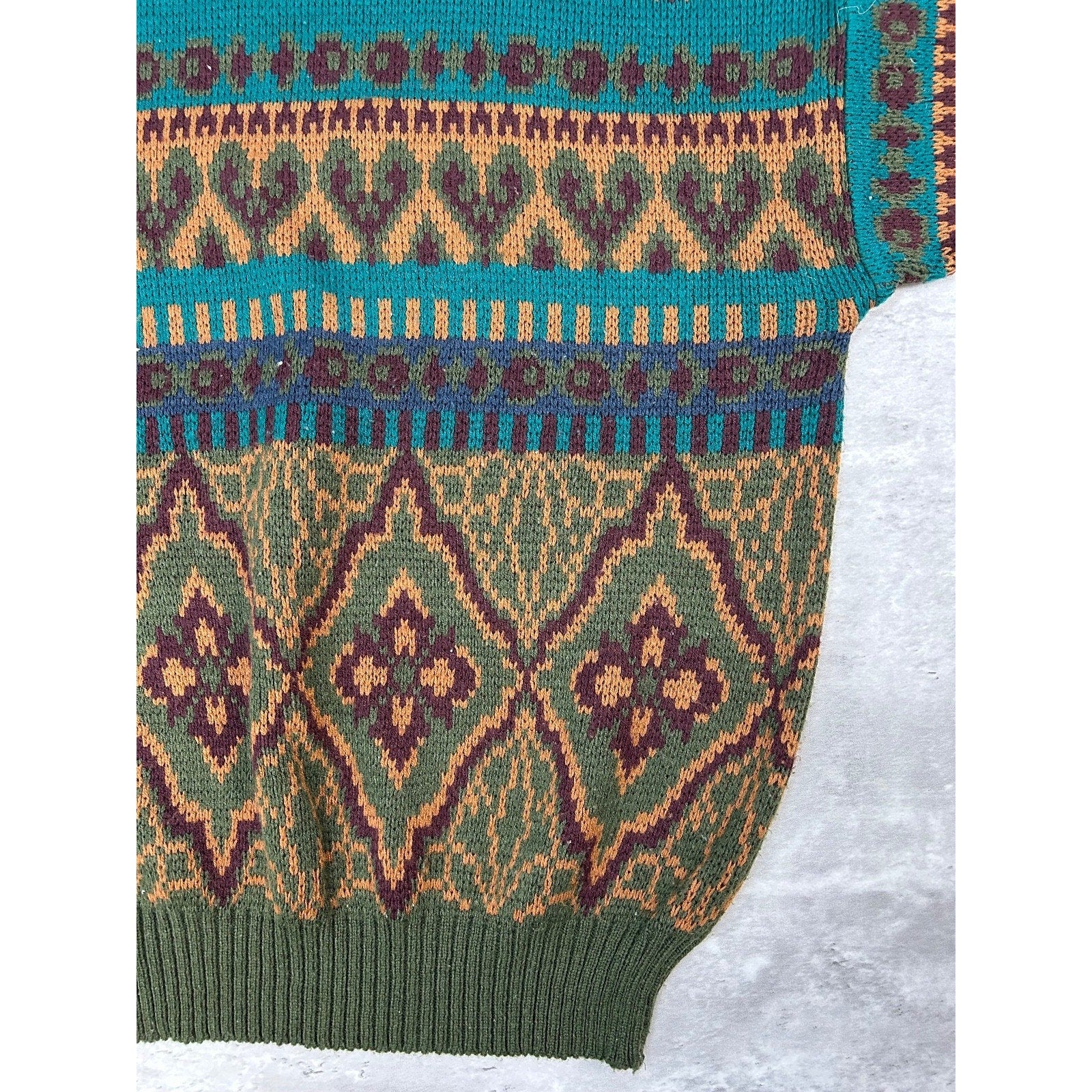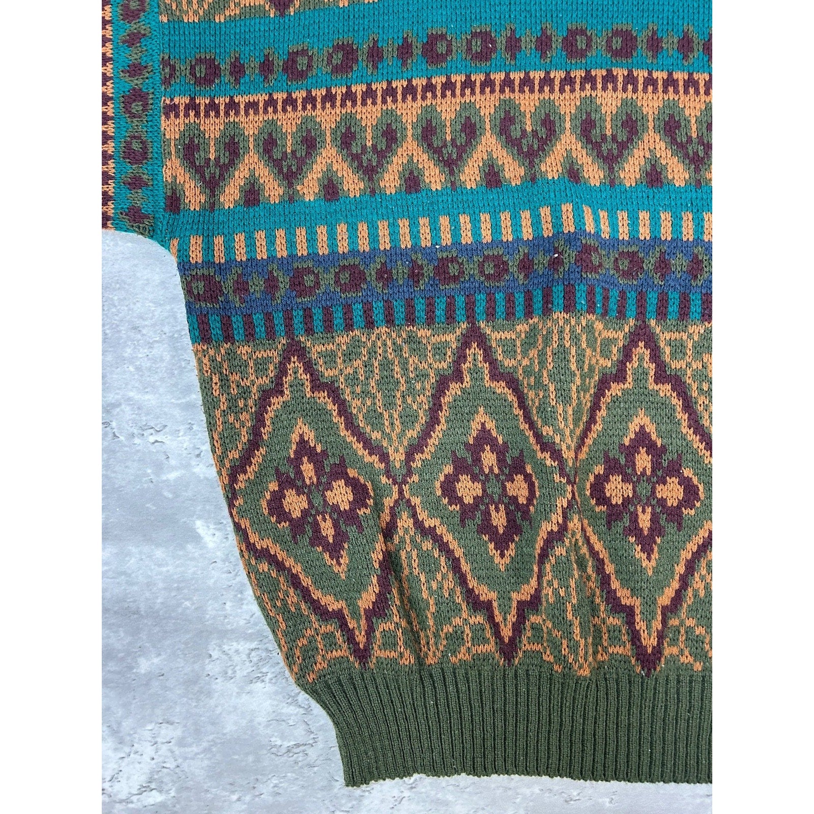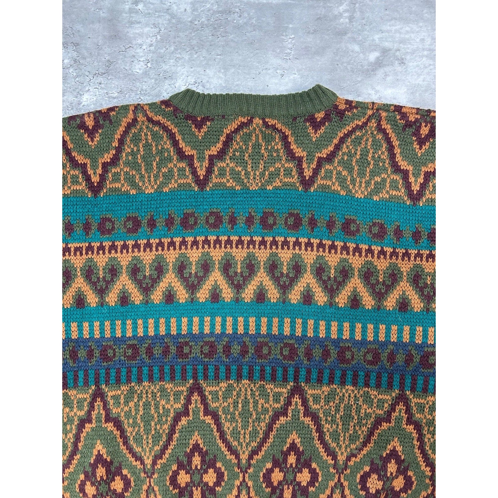 Vintage 90s Celebrity Club Abstract Striped Pullover Knit Sweater Size XL
