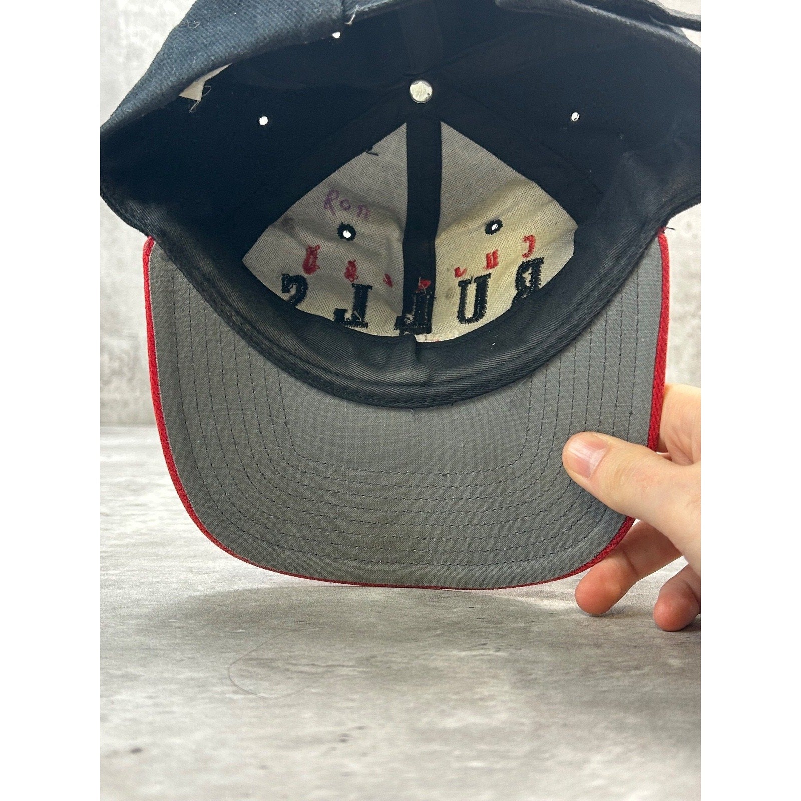 Vintage 90s Chicago Bulls NBA Embroidered Spellout Strapback Hat OSFA