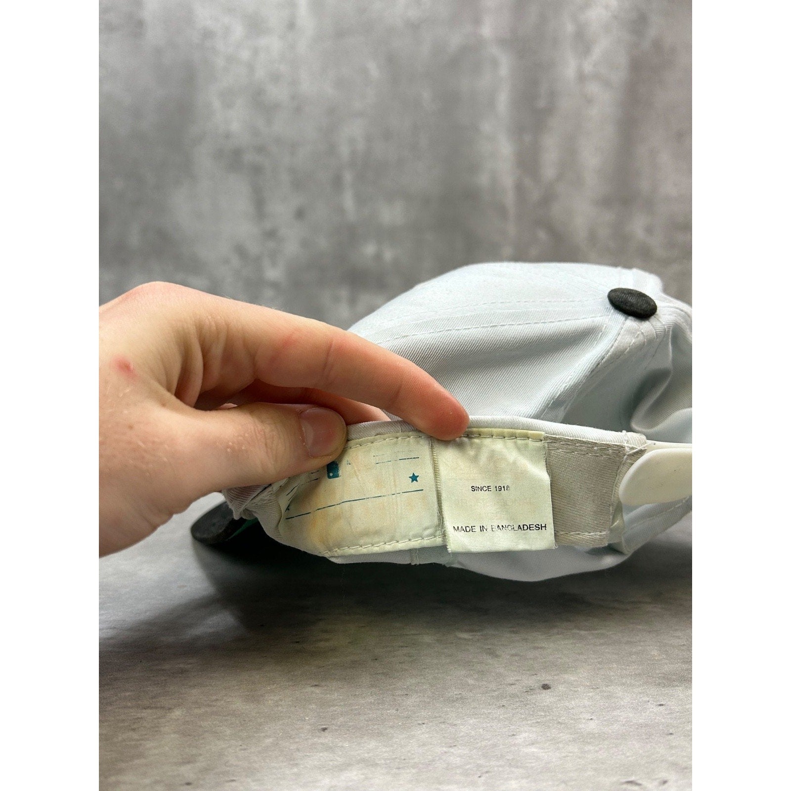 General wear, fading due to age. Creasing on dome. Fade marks found on both sides of brim. Yellowing on sweatband. Marks found around.