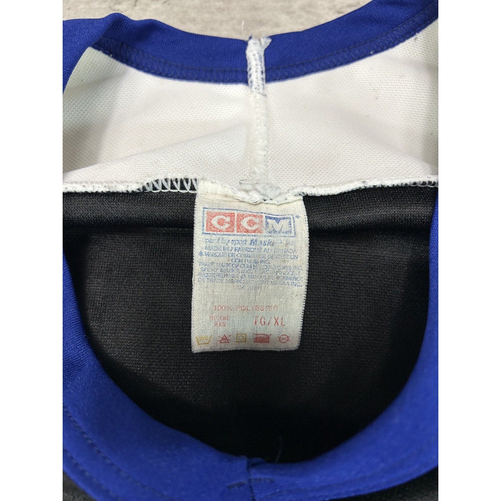 Wear due to age. Marks, pilling, loose stitching, and thread pulls found throughout. Color peeling off of back numbers. Creasing on embroidered patches. Minor yellowing on white sections.