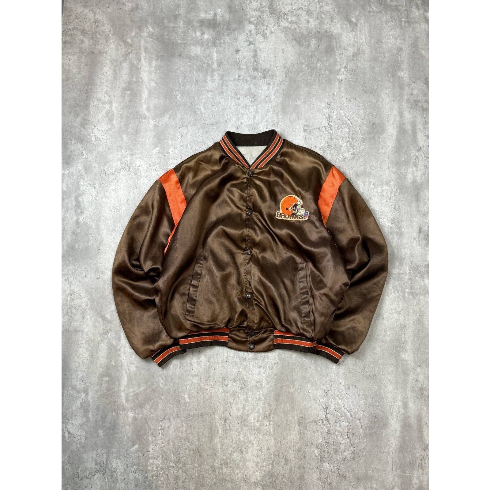 Vintage 90s Cleveland Browns NFL Embroidered Logo Satin Bomber Jacket Size Large