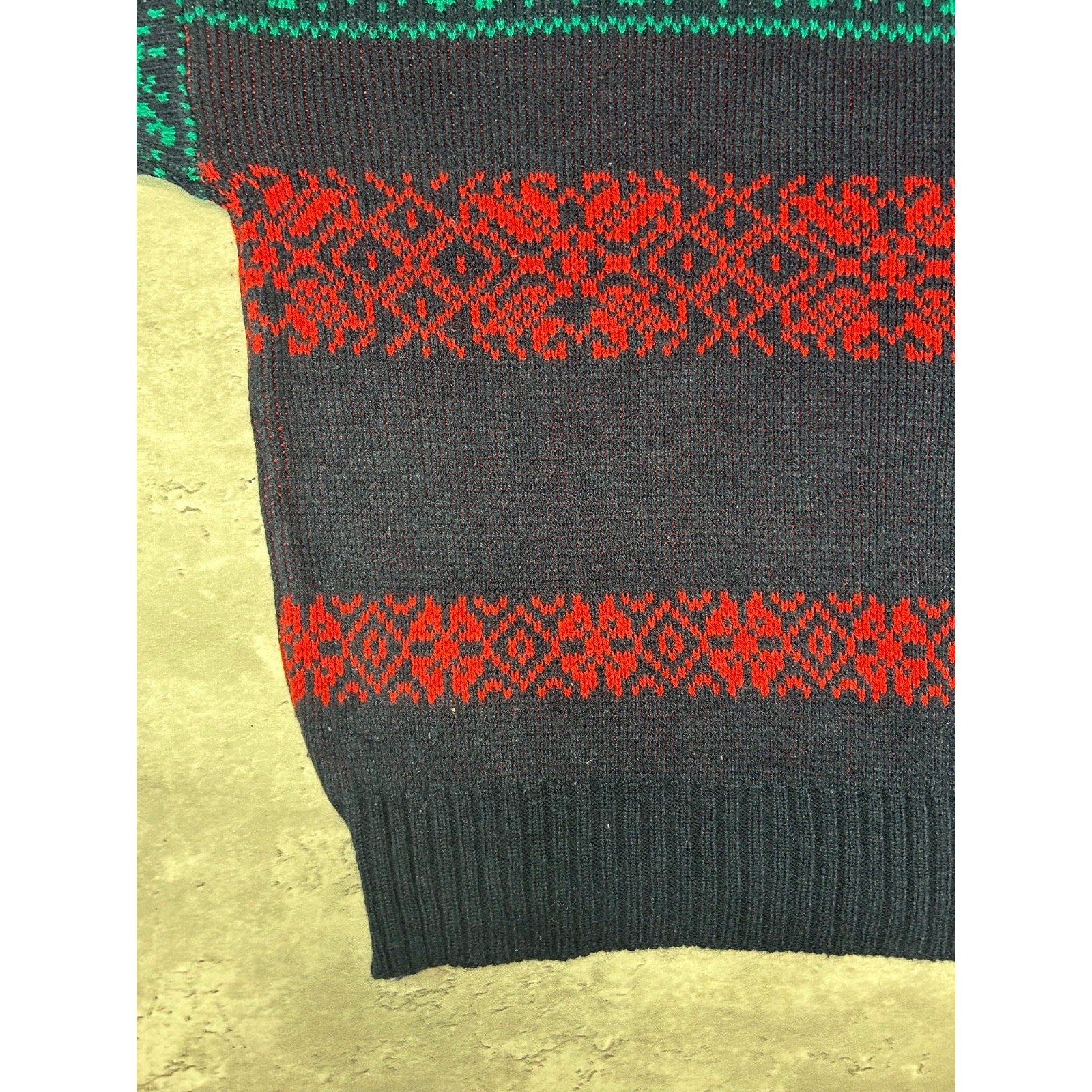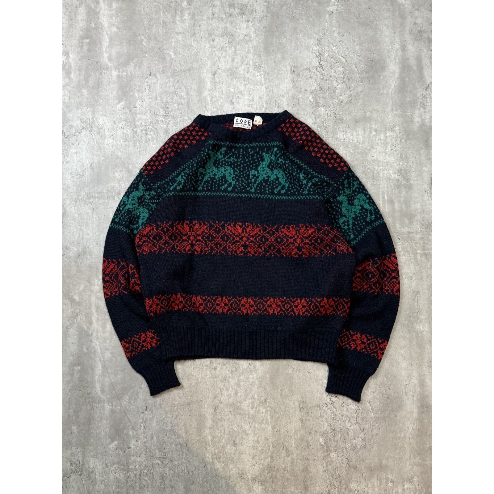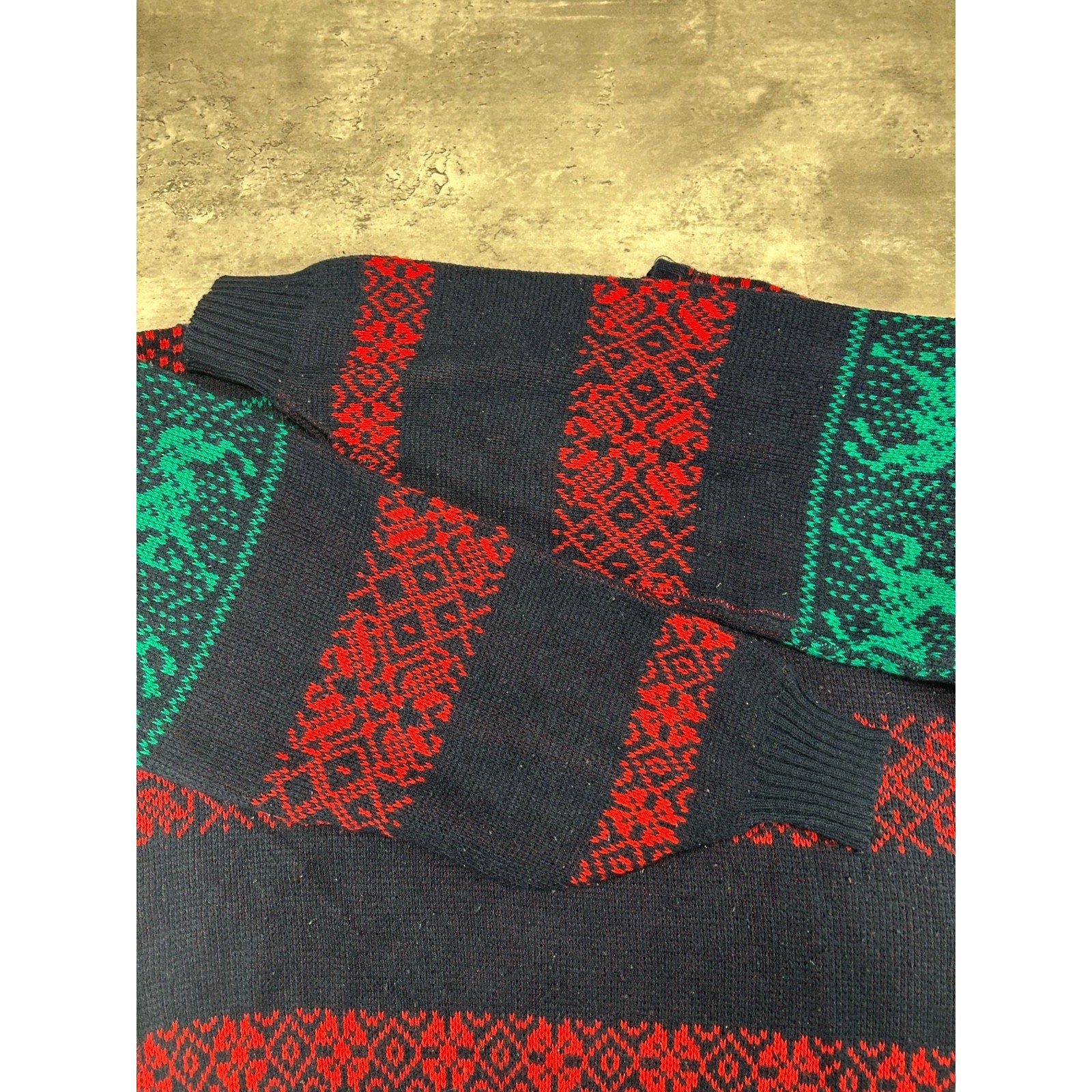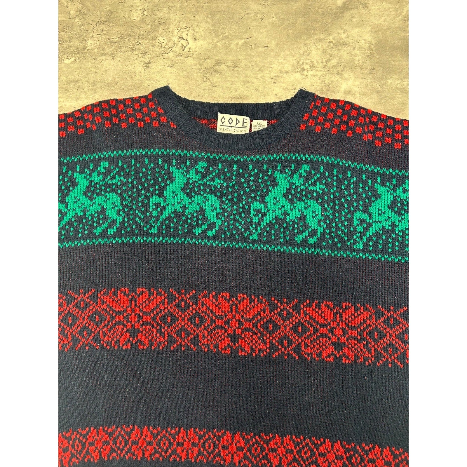 Vintage 90s Code Identification Abstract Striped Reindeer Knit Sweater Sz Large