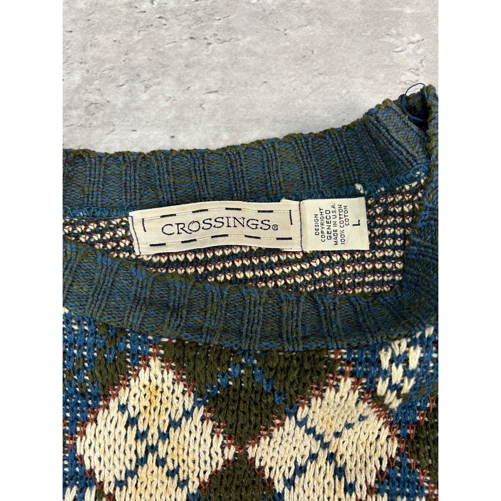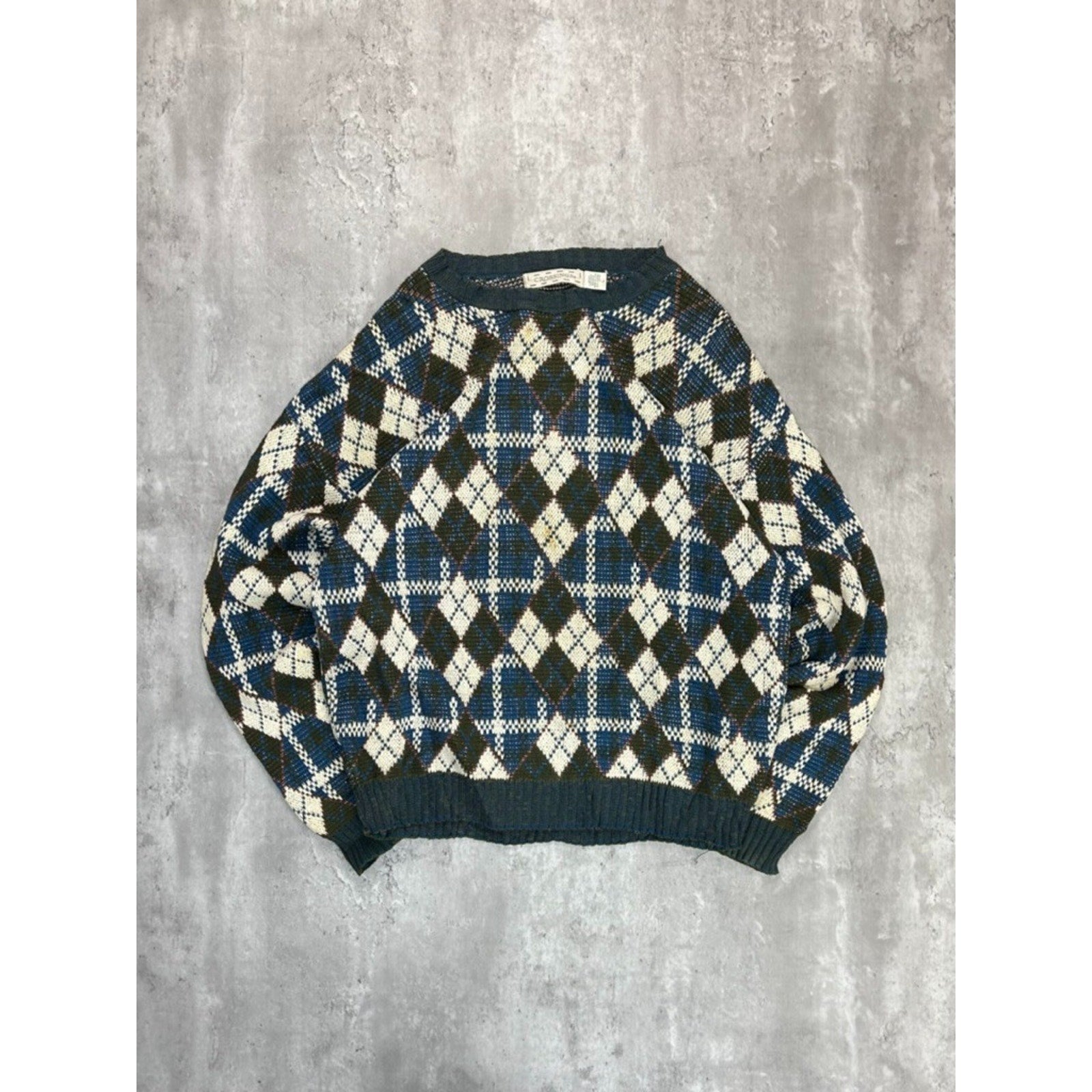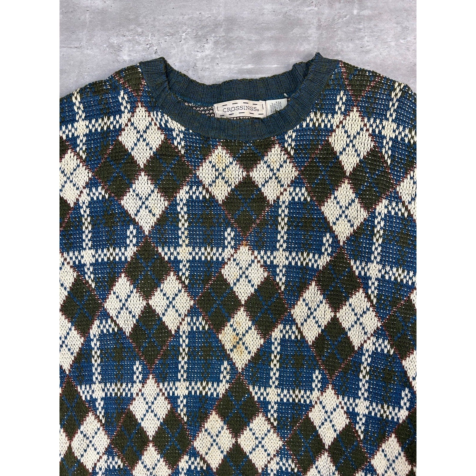 Vintage 90s Crossings Argyle Print Pullover Knit Sweater Size Large