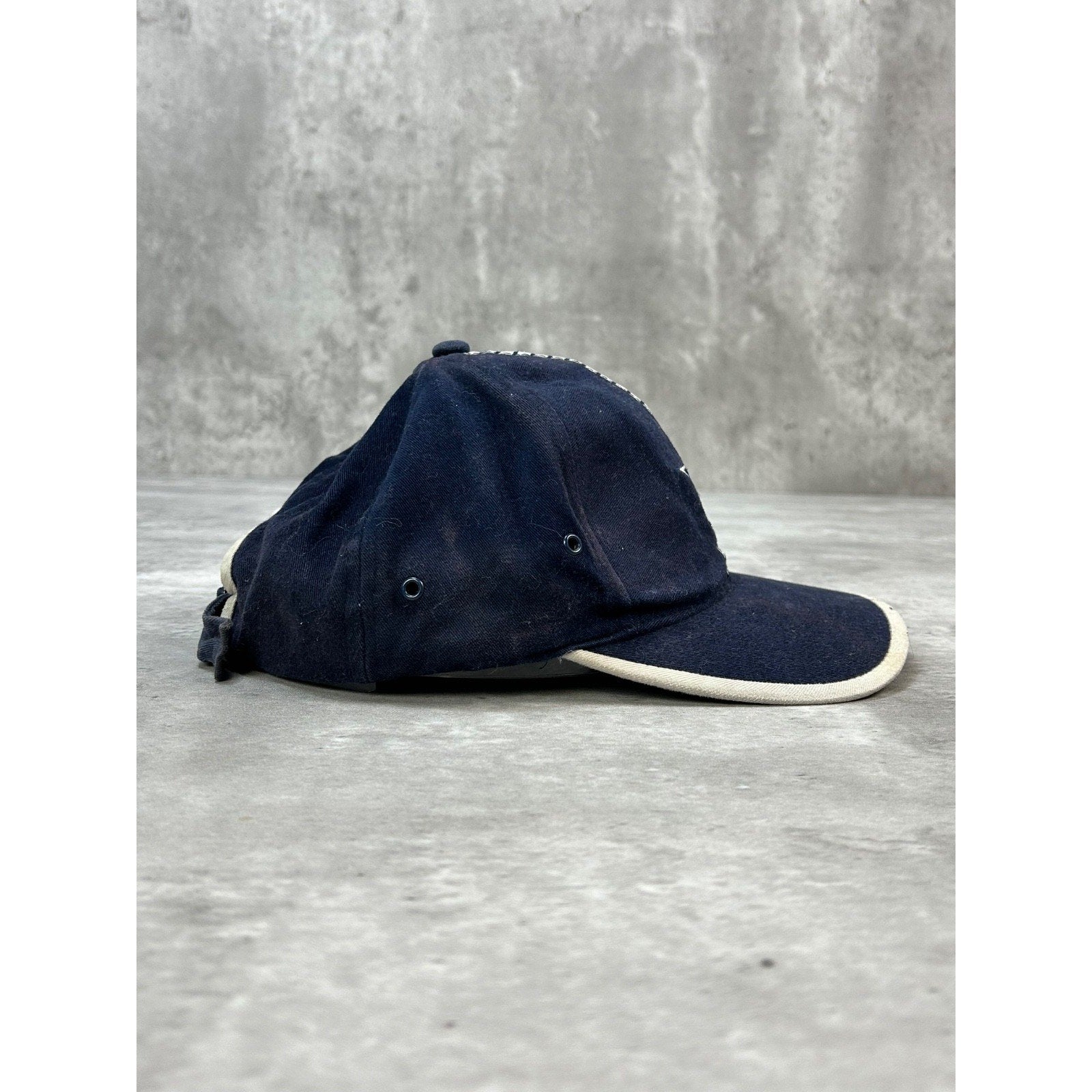 General wear, fading due to age. Marks on white sections of brim and back of dome. Fade marks on dome.