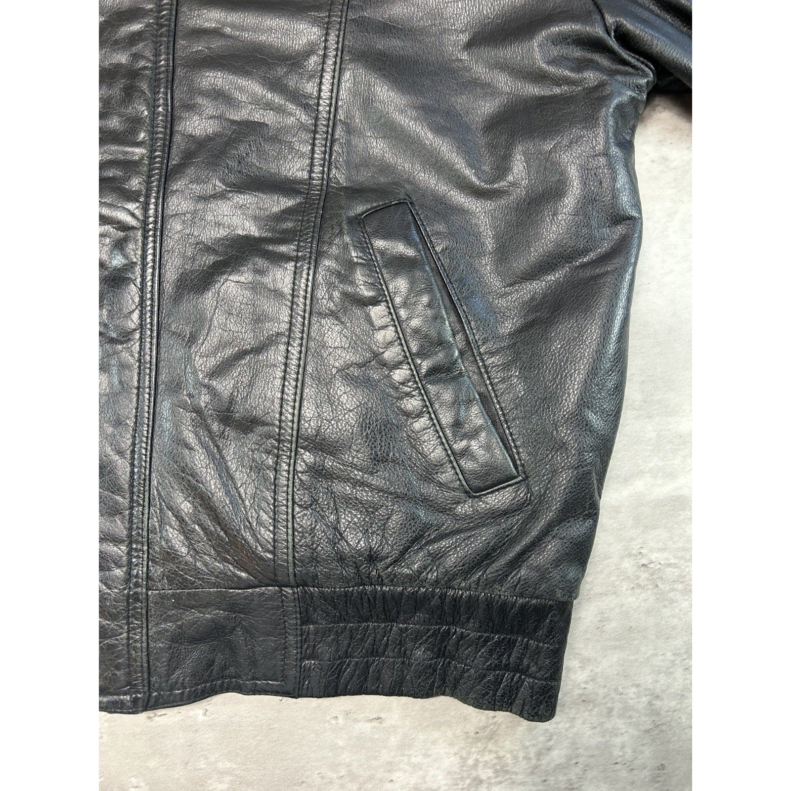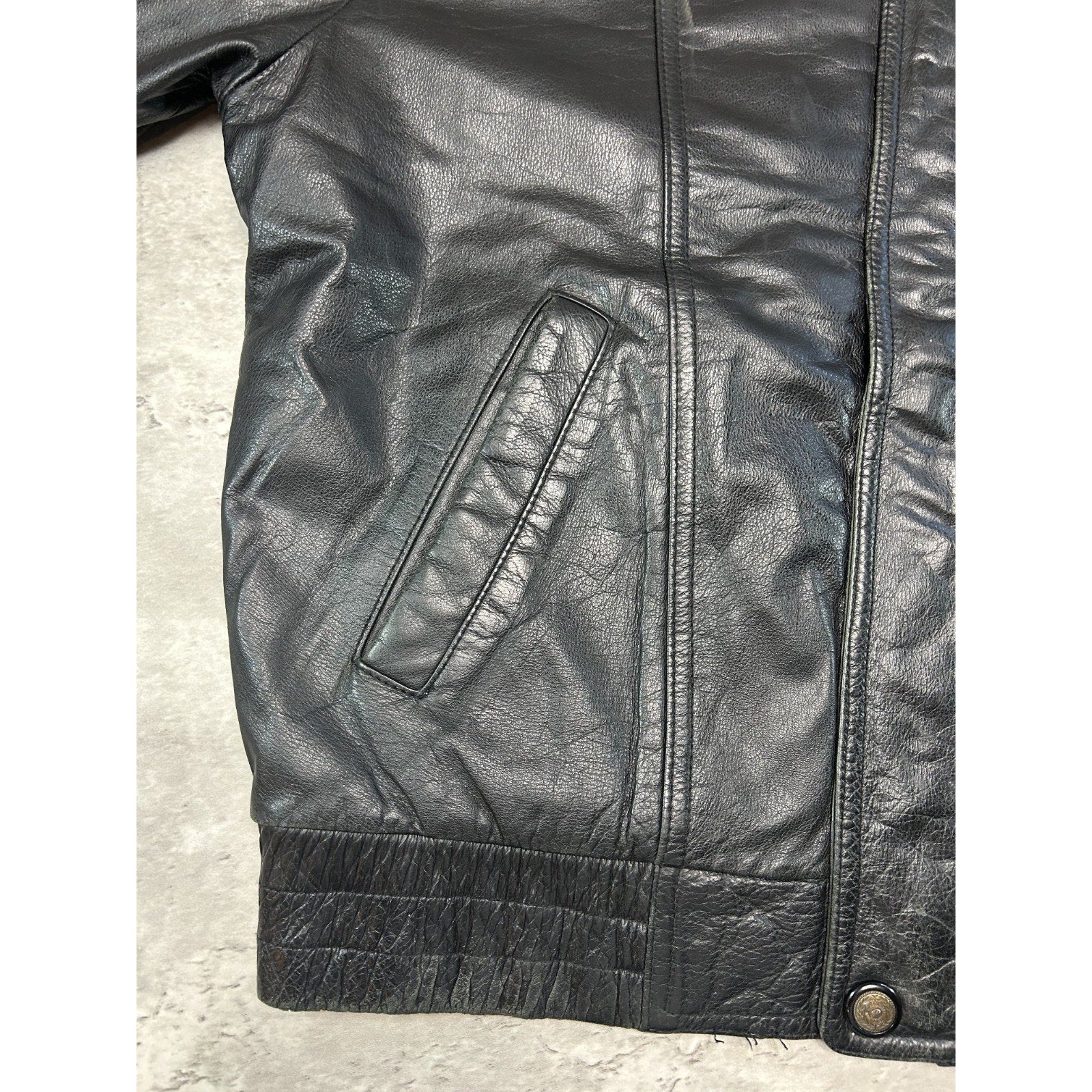 Vintage 90s Danier Full Zip Leather Bomber Jacket Size Small Black