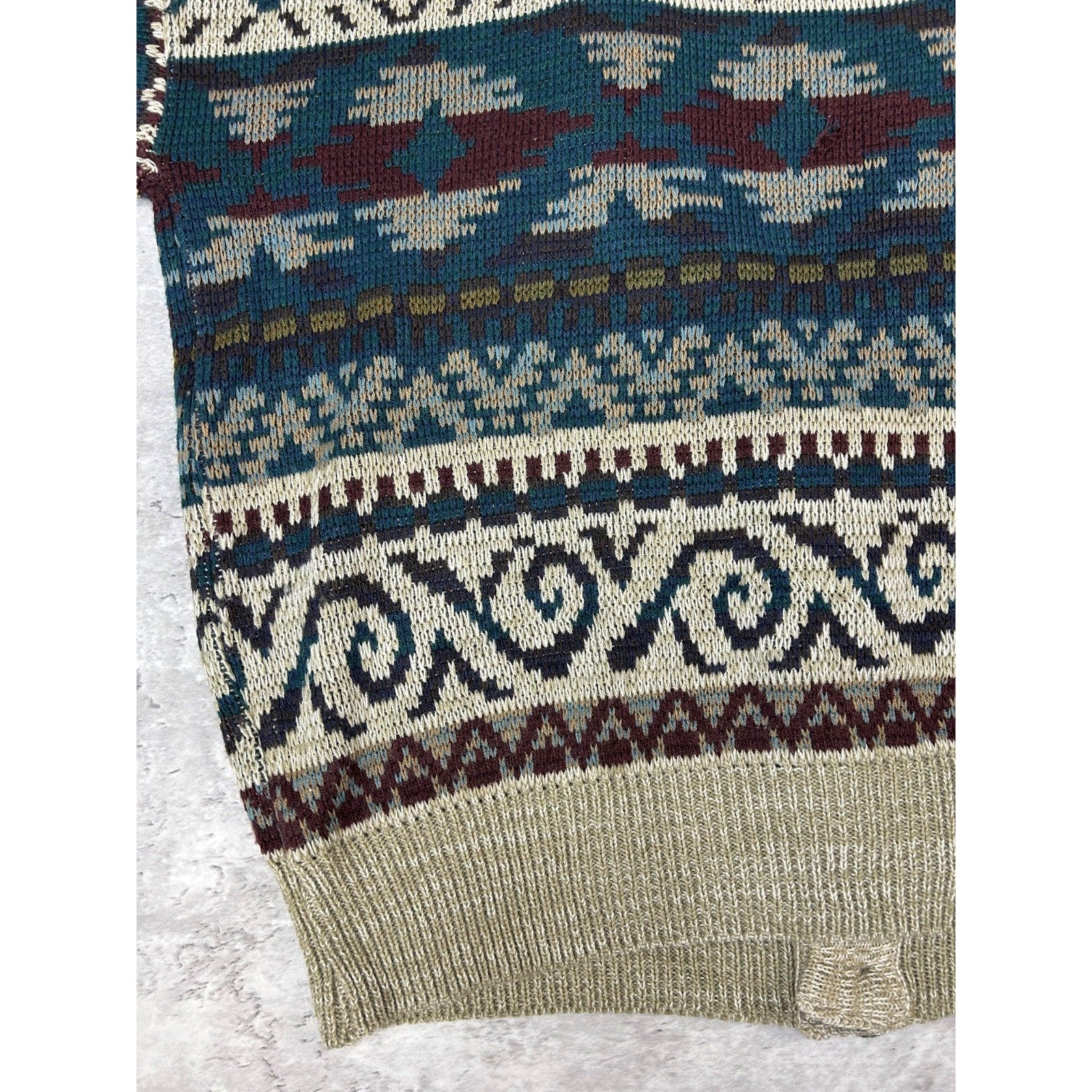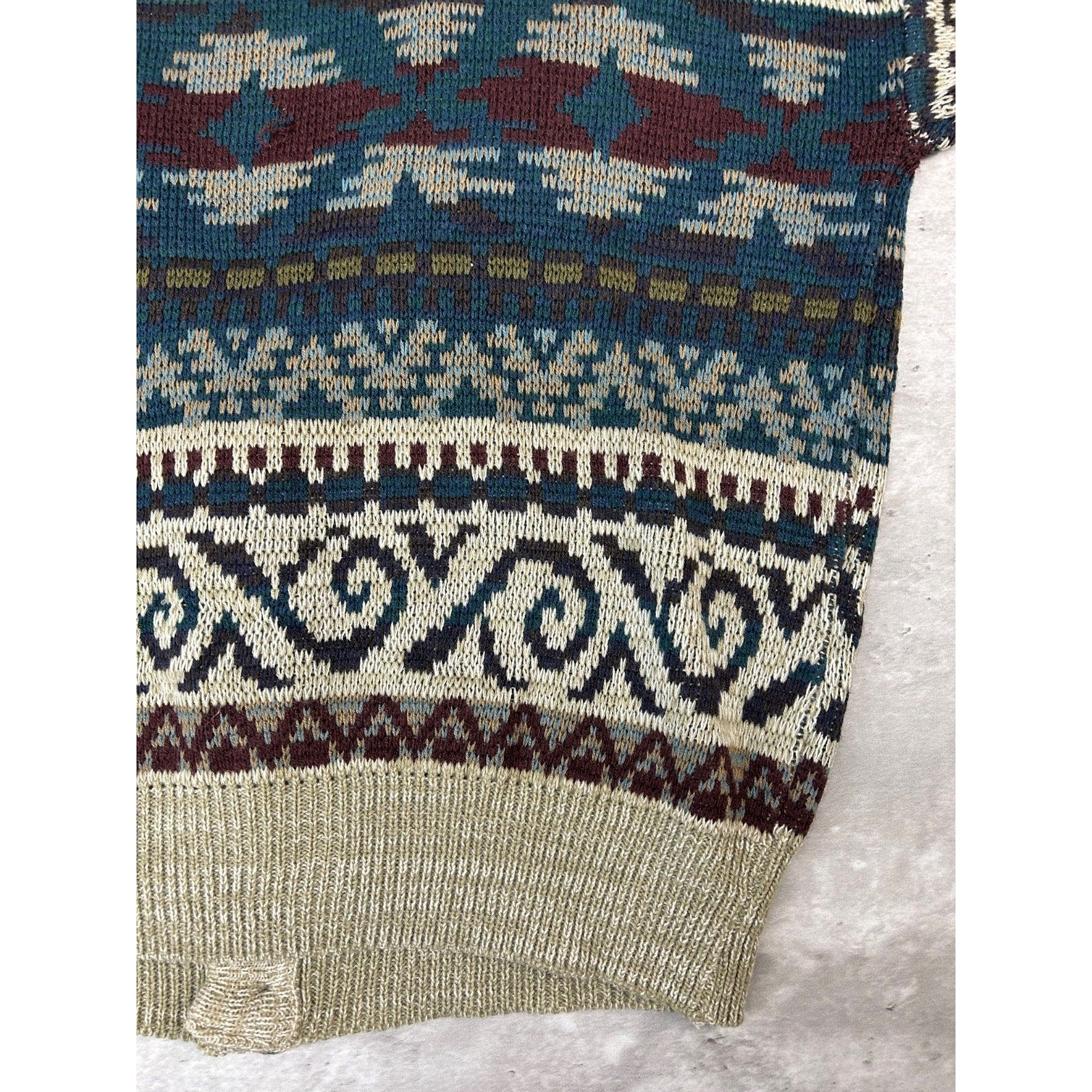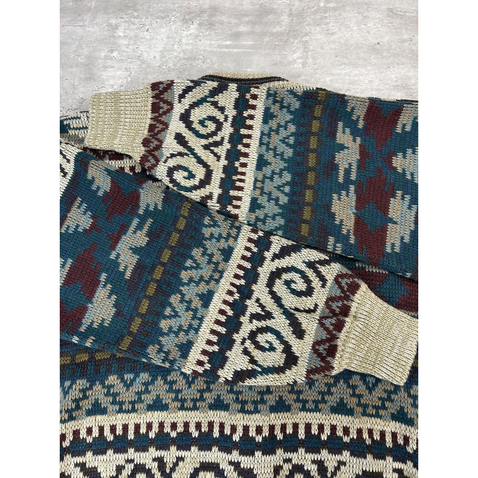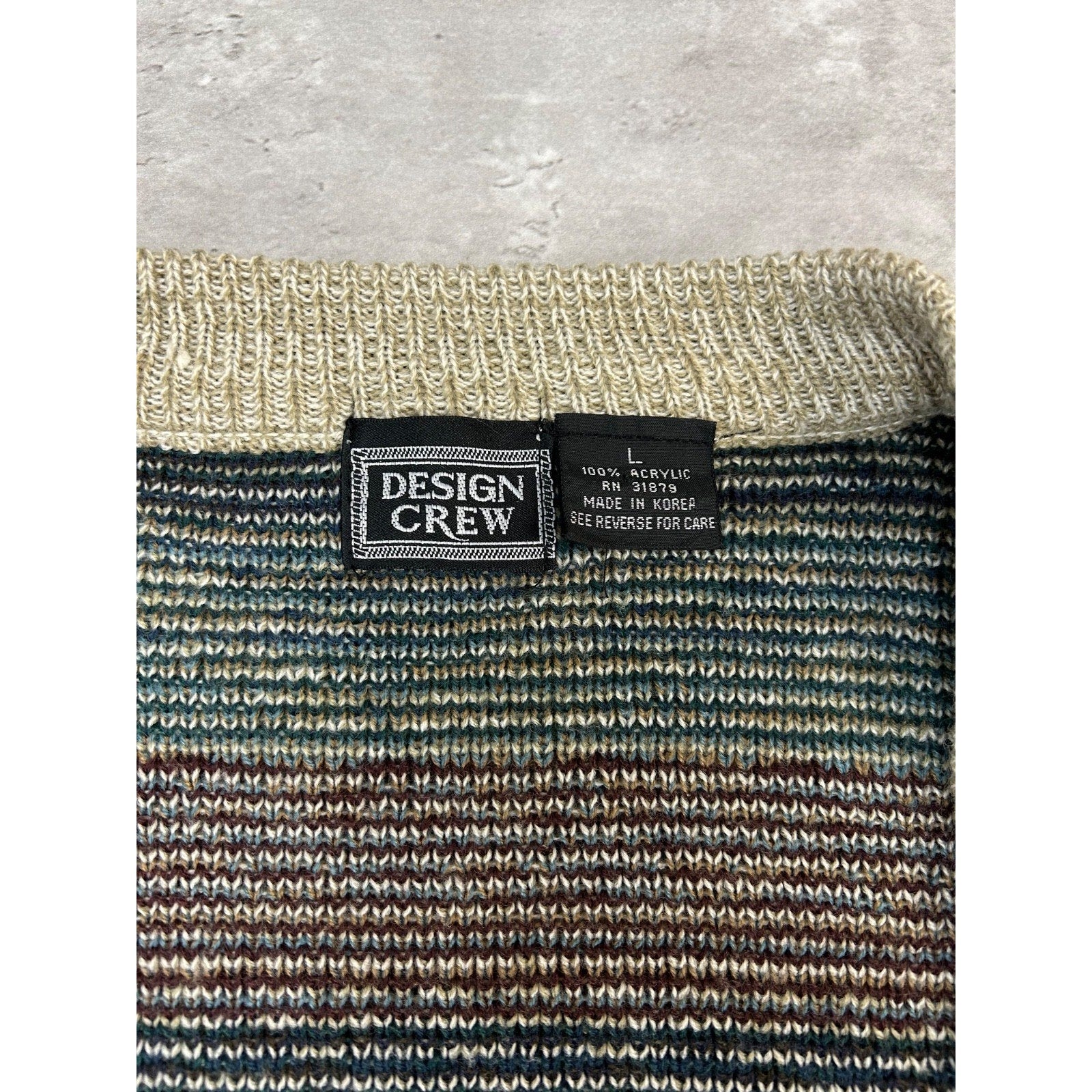 Vintage 90s Design Crew Abstract Striped Knit Cardigan Sweater Size Large